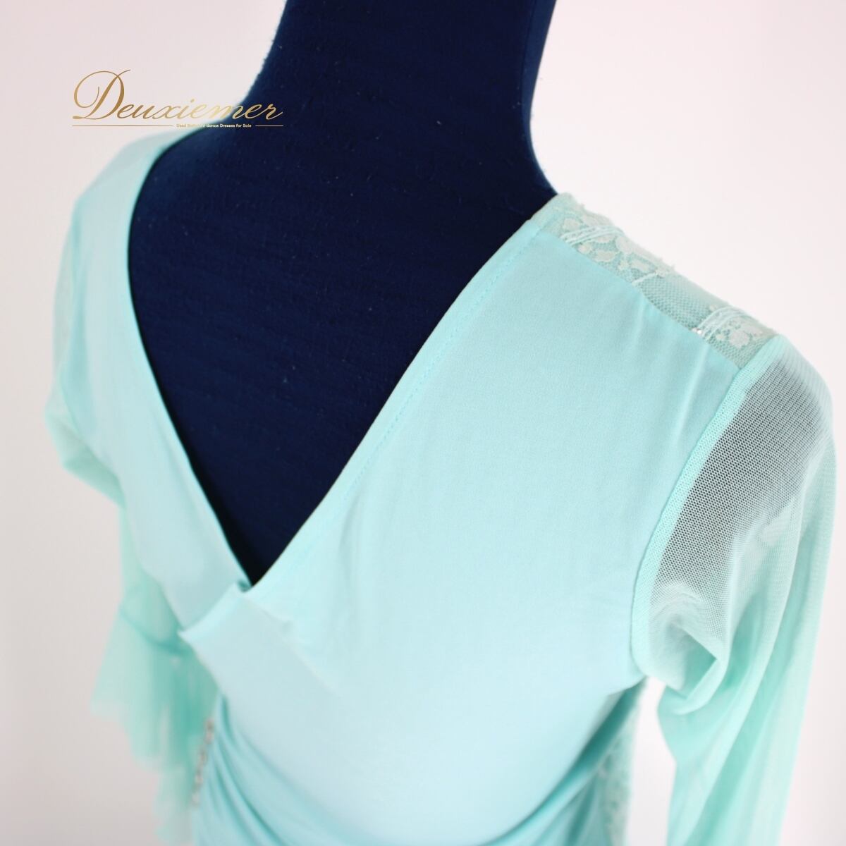 【美品 社交ダンス衣装】上下セット レッスンウェア パーティー EURO 水色 ライトブルー 花柄 レース フェミニン 華やか 派手