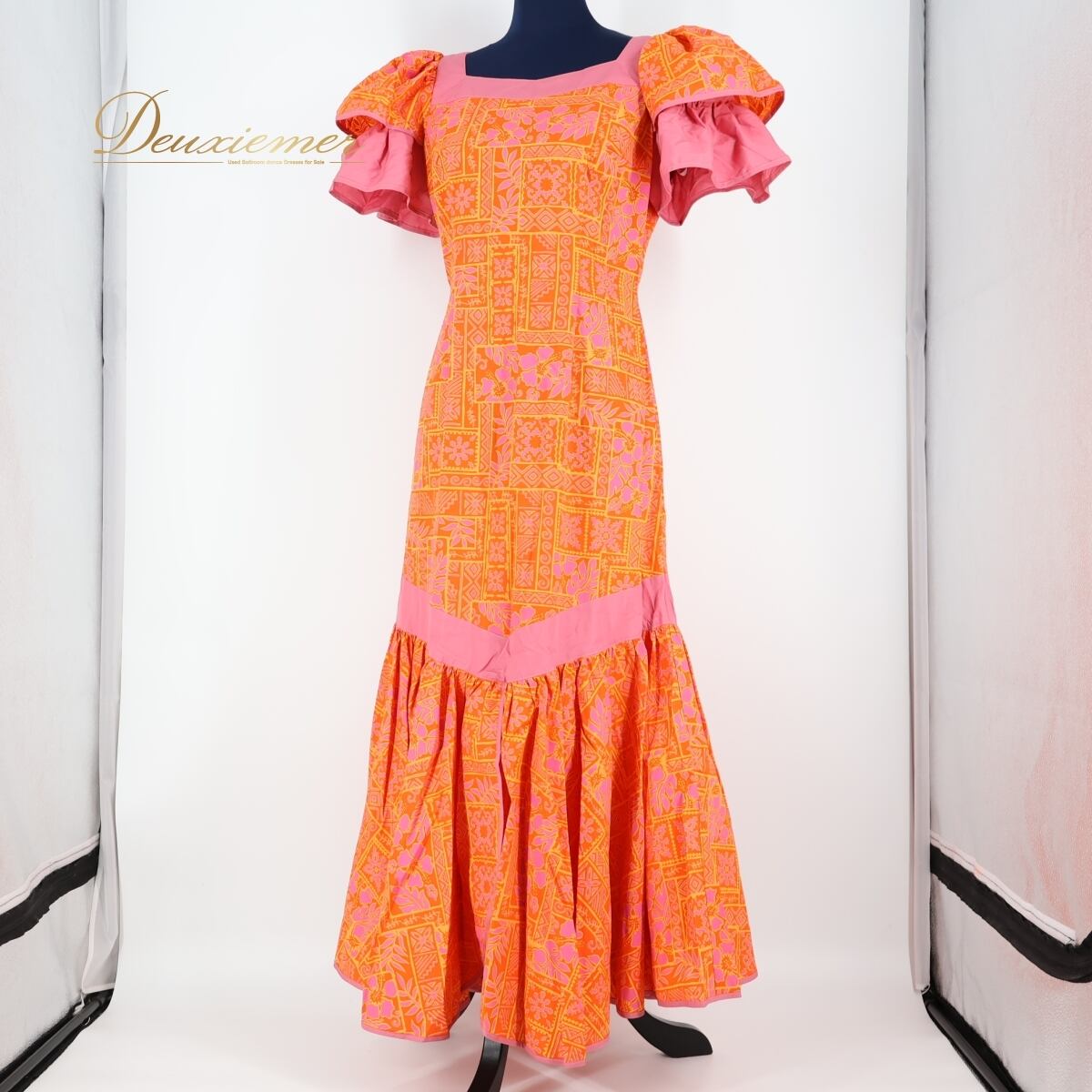 #フラダンス #フラドレス #FANCYDRESS #ファンシードレス #オレンジワンピース #ピンクアクセント #花柄ドレス #ハイビスカス柄 #鮮やかカラー #半袖ドレス #かわいい衣装 #南国スタイル #アロハファッション #リゾートコーデ #夏スタイル #舞台衣装 #ダンス衣装 #ダンスコスチューム #ステージ衣装 #古着 #中古 #ENUTSU
