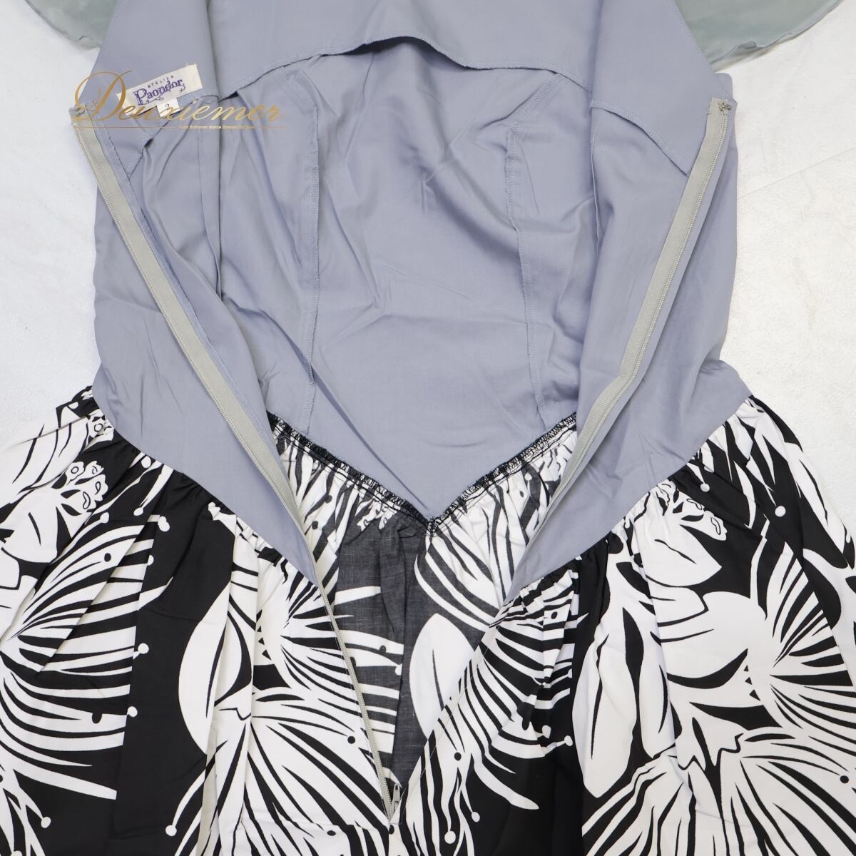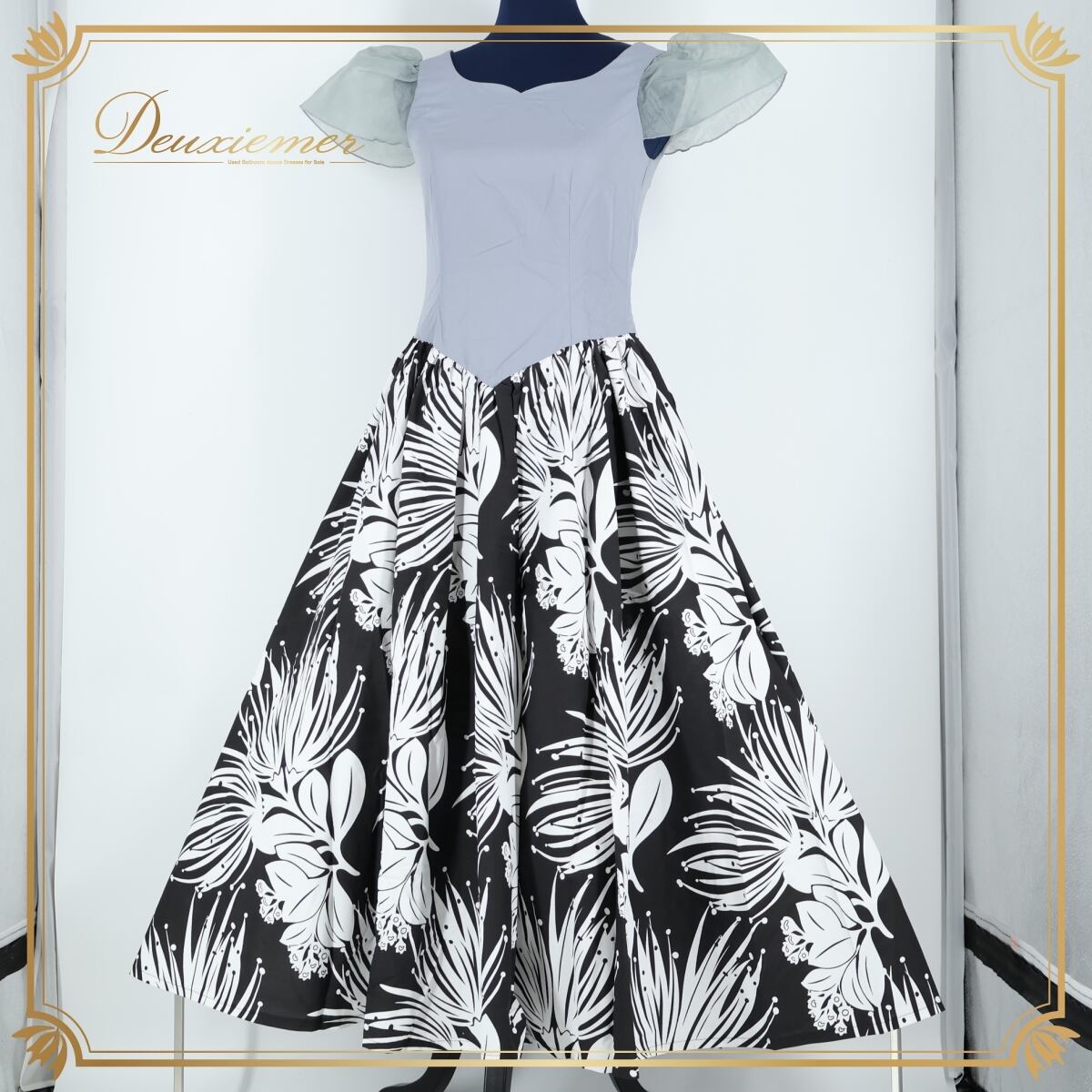 #フラダンス #フラドレス #Paondor #パンドール #日本製 #グレーワンピース #ブラックコーデ #ホワイトアクセント #レフア柄 #花柄ドレス #大柄プリント #かわいい衣装 #上品スタイル #南国ファッション #ダンス衣装 #ダンスコスチューム #ステージ衣装 #古着 #中古 #ENUTSU