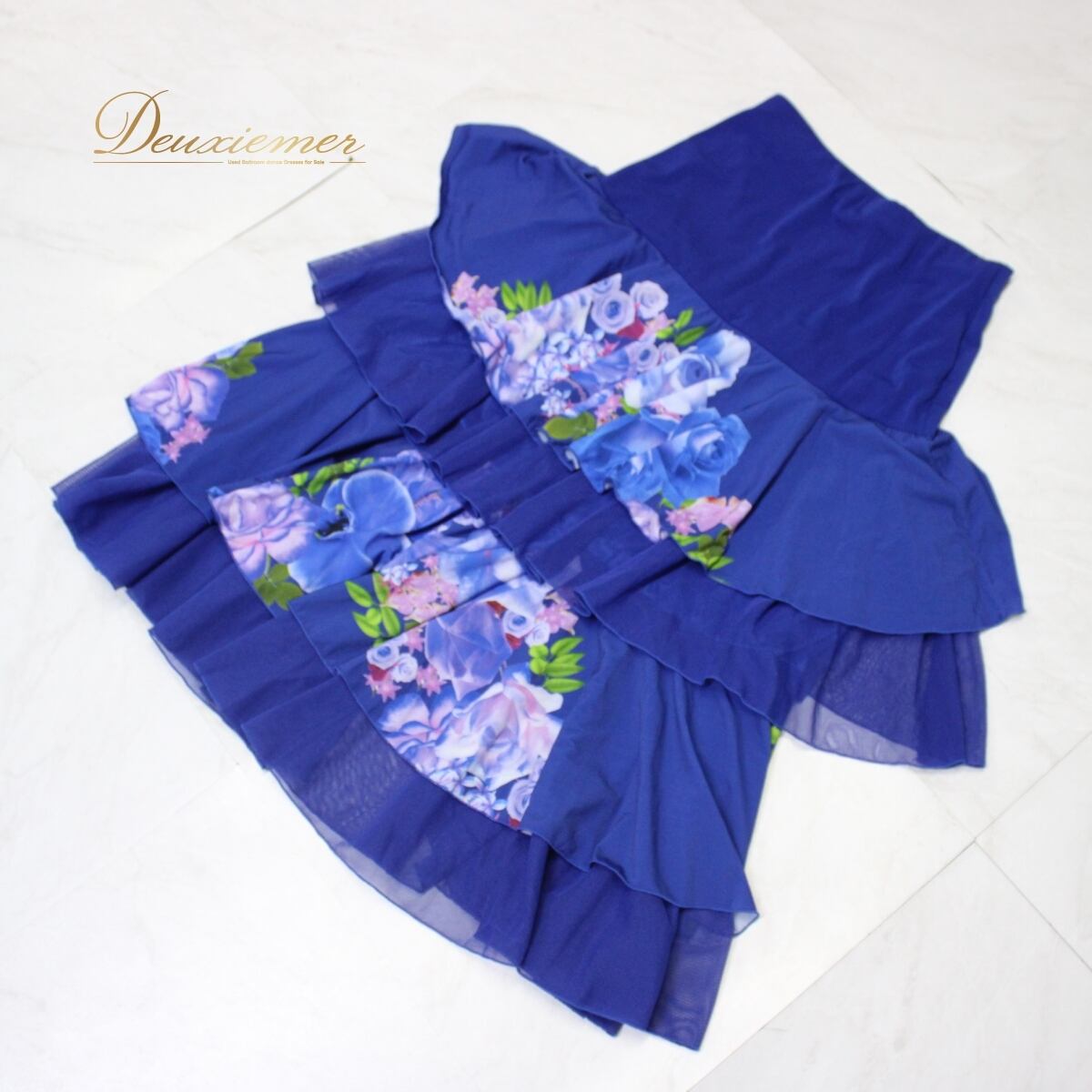 【美品 社交ダンス衣装】スカート レッスンウェア パーティー 青 ブルー 花柄 紫 パープル 緑 グリーン 華やか フェミニン