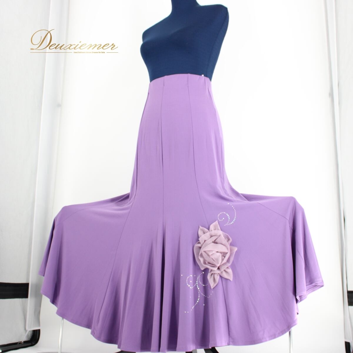 【美品 社交ダンス衣装】スカート レッスンウェア パーティー 紫 パープル ライラック ラインストーン 花飾り フェミニン 上品