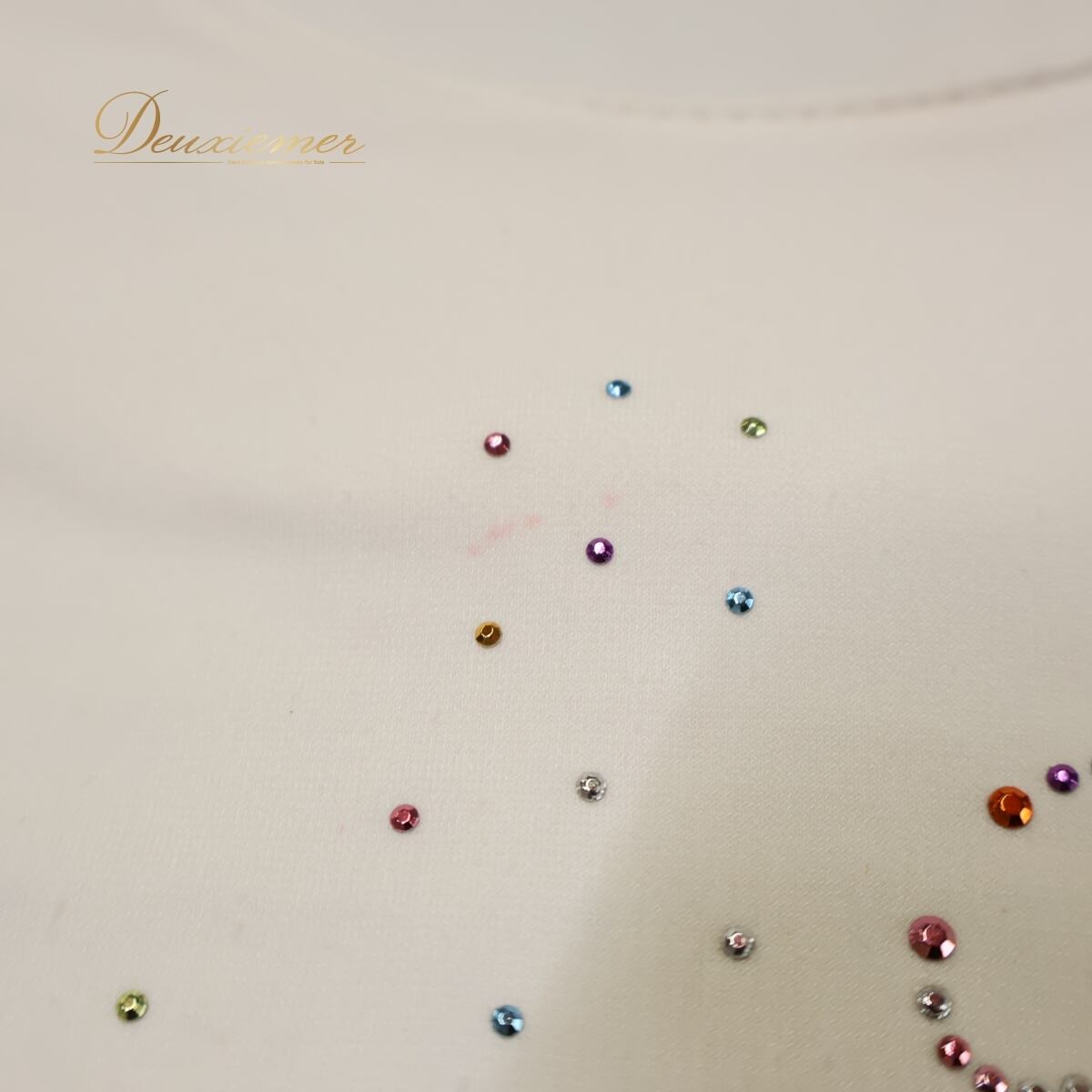 #社交ダンス #ダンストップス #SolieldOr #ホワイトトップス #蝶々柄 #ラインストーン #カラフルデザイン #キラキラ衣装 #リボンモチーフ #花柄アクセント #かわいいトップス #練習着 #レッスンウェア #爽やかコーデ #美品アイテム #大人かわいい #ステージ映え #白ブラウス #ダンス衣装 #ダンスコスチューム #ステージ衣装 #古着 #中古 #ENUTSU