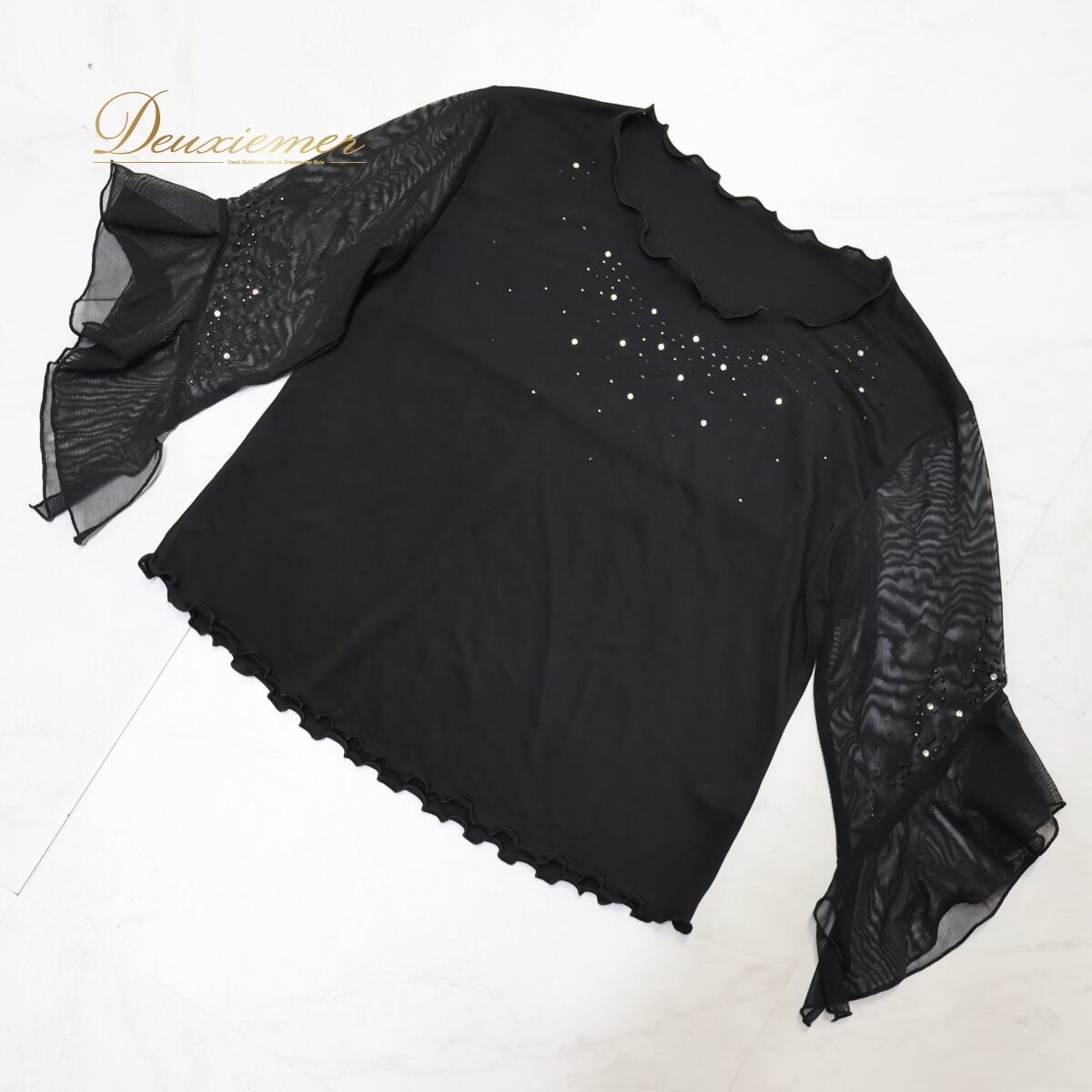 #社交ダンス #ダンストップス #ブラックトップス #ラインストーン #キラキラ衣装 #透け感素材 #上品スタイル #シンプルコーデ #練習着 #レッスンウェア #長袖トップス #大人かわいい #ストレッチ素材 #華やかトップス #美品アイテム #黒ブラウス #ダンス衣装 #ダンスコスチューム #ステージ衣装 #古着 #中古 #ENUTSU