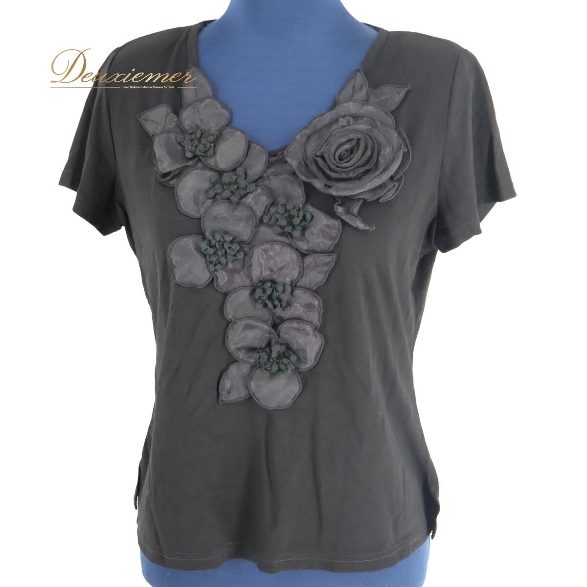 【美品 社交ダンス衣装】ブラック トップス シャツ orsay 黒 花柄 飾り レッスンウェア 練習着 シンプル 胸元 華やか 無地