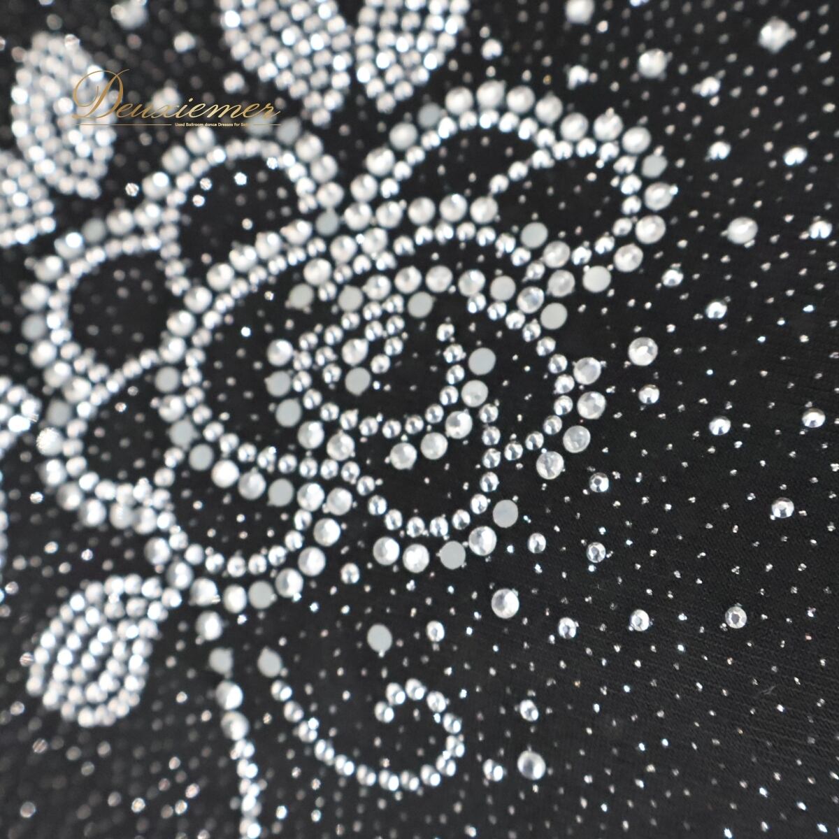 【社交ダンス衣装】ブラック トップス ラインストーン 黒 花柄 飾り リボン レッスンウェア 練習着 胸元 華やか ラメ レース