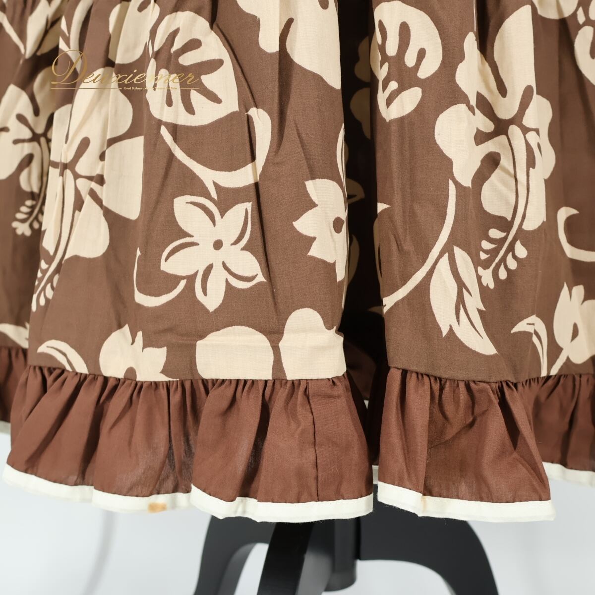 【フラダンス衣装】ブラウン good times ワンピース ドレス 茶 ベージュ ハイビスカス柄 花柄 フリル ハワイアン かわいい