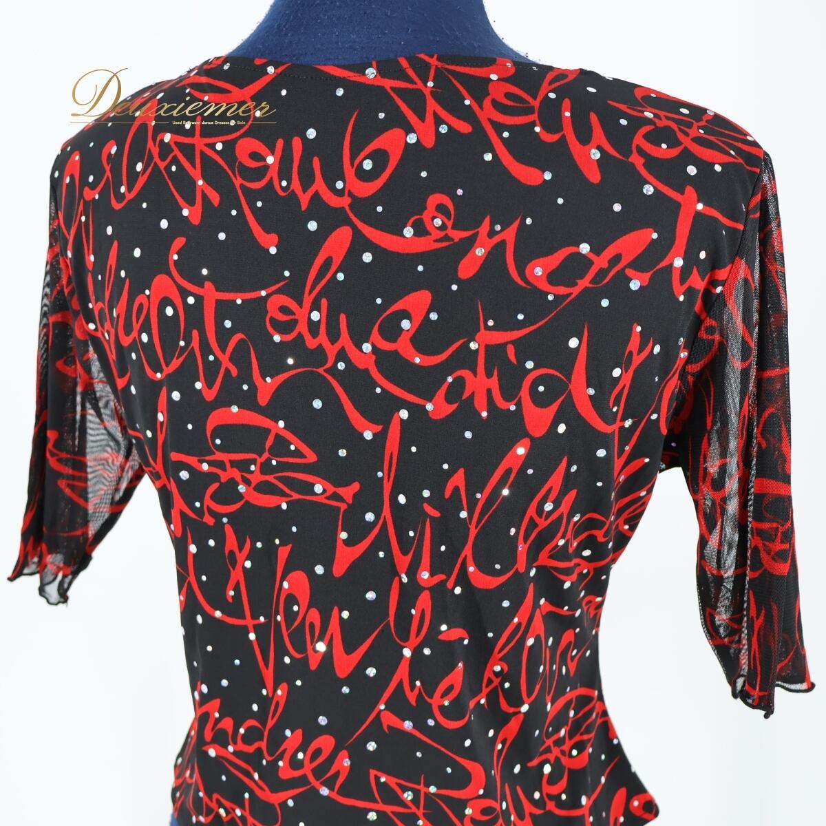 #社交ダンス #ダンストップス #ブラックトップス #レッドアクセント #ホログラムデザイン #キラキラ衣装 #半袖トップス #黒ブラウス #赤コーデ #美品アイテム #レッスンウェア #練習着コーデ #伸縮性あり #ストレッチ素材 #大人かわいい #ダンス衣装 #ダンスコスチューム #ステージ衣装 #古着 #中古 #ENUTSU