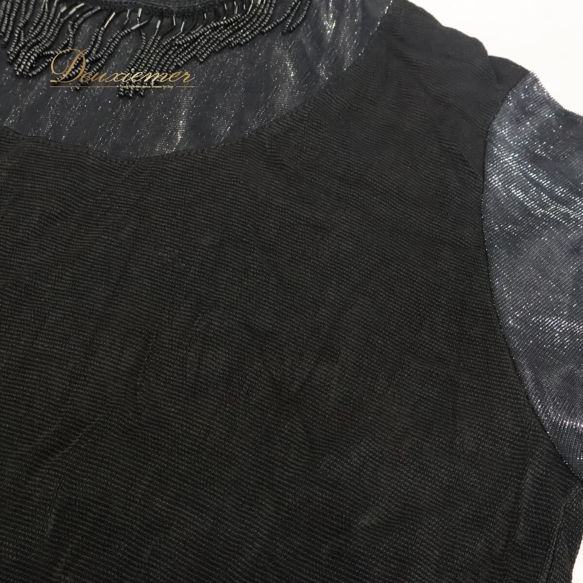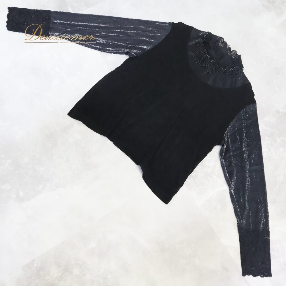 #社交ダンス #社交ダンス衣装 #ダンストップス #ブラックトップス #黒トップス #真っ黒コーデ #レース生地 #ビーズ飾り #ラメ入り #光沢感 #首元デザイン #透け感トップス #練習着 #レッスンウェア #ダンス衣装 #ダンスコスチューム #ステージ衣装 #古着 #中古 #ENUTSU