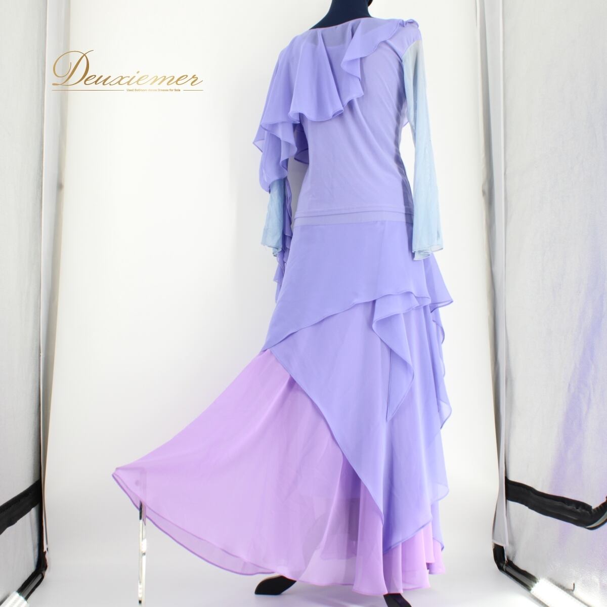 #社交ダンス #ダンス衣装 #上下セット #ツーピース #create_sun #クリエイトサン #紫ドレス #明るめカラー #ダンストップス #ダンススカート #伸縮素材 #ウエストゴム #パーティ衣装 #発表会コーデ #エレガントスタイル #フォーマルダンス #スタンダードダンス #レッスンウェア #ダンスコスチューム #ステージ衣装 #古着 #中古 #ENUTSU