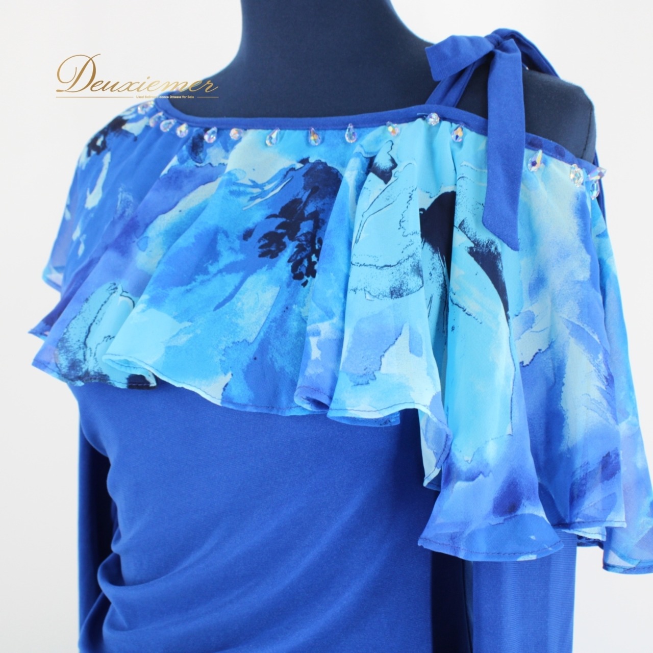 【社交ダンス衣装】ブルー create-sun クリエイトサン 上下セット ツーピース セットアップ 青 水色 花柄 レース レッスン