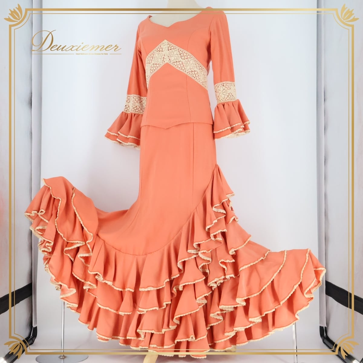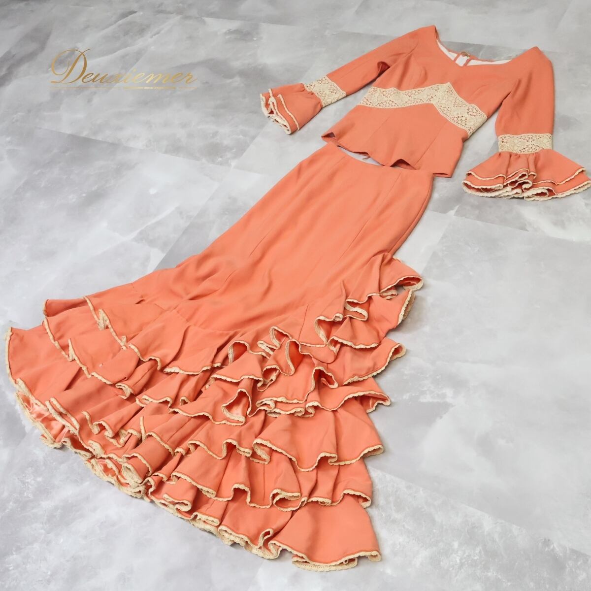 #フラメンコ #衣装 #上下セット #ツーピース #ダンス #オレンジ #サーモンピンク #ボランテ #フリル #レース #パーティー #イベント #モダン #クラシック #トレンド #ファッション #スタイル #コーディネート #ダンス衣装 #ENUTSU