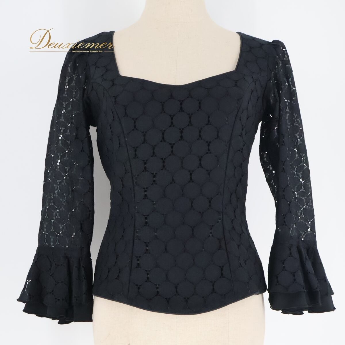 【美品 フラメンコ衣装】ブラック HERMOSA IBERIA エルモサ ブラウス トップス 黒 レース ダンス フリル レディース 発表会
