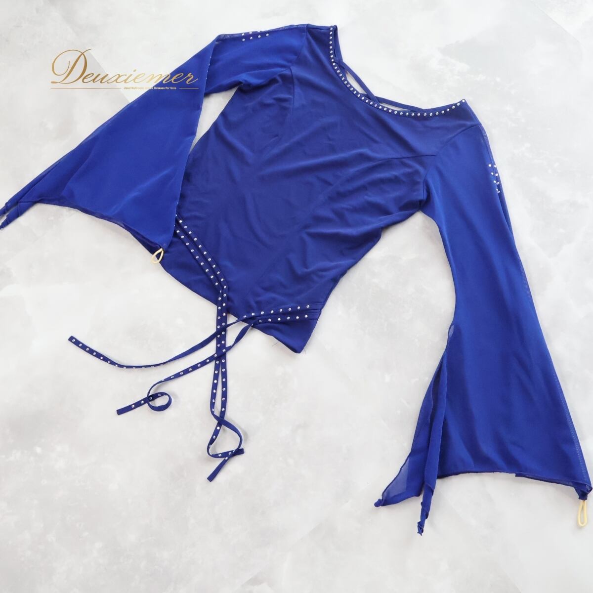 【社交ダンス衣装】ブルー create-sun クリエイトサン ブラウス トップス 青 無地 軽い 薄い レース レッスン パーティ 発表会