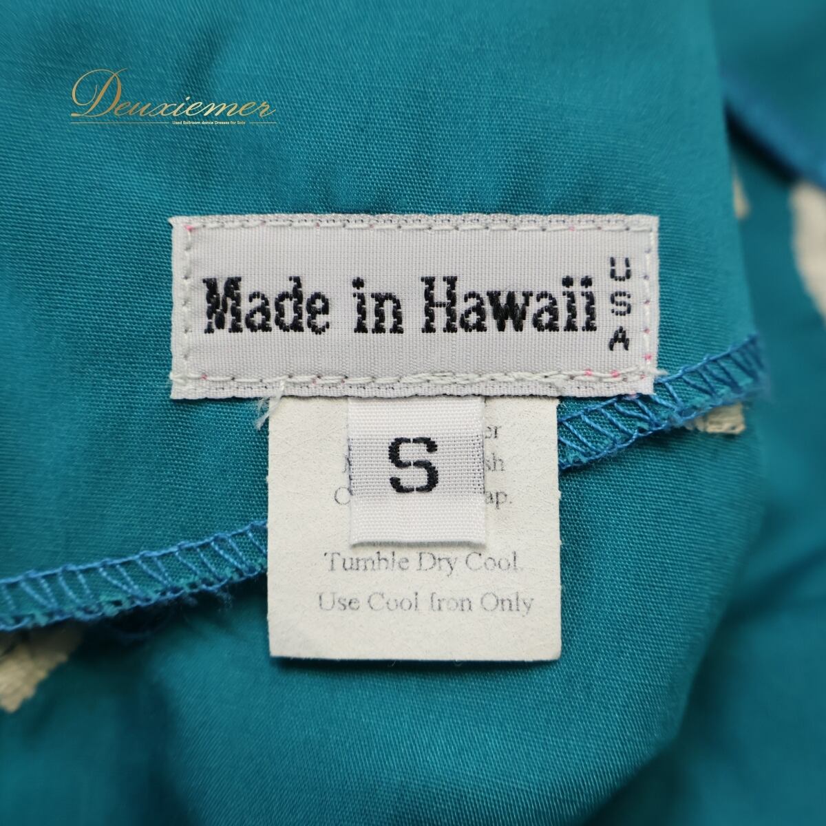 【ハワイ製 フラダンス衣装】グリーン ワンピース ドレス 緑 黒 半袖 絞り パフスリーブ ブラック ハワイアン アロハ かわいい
