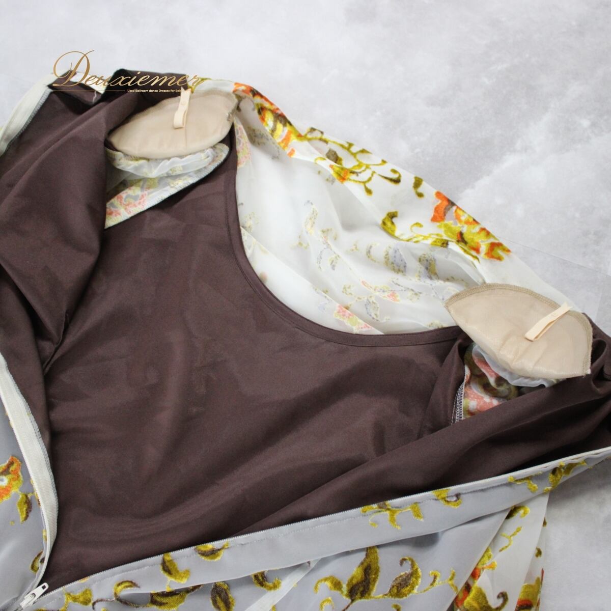 【日本製社交ダンス衣装】上下セット レッスンウェア 練習着 UNA ユーナ 白 茶色 ホワイト ブラウン イエロー オレンジ 花柄