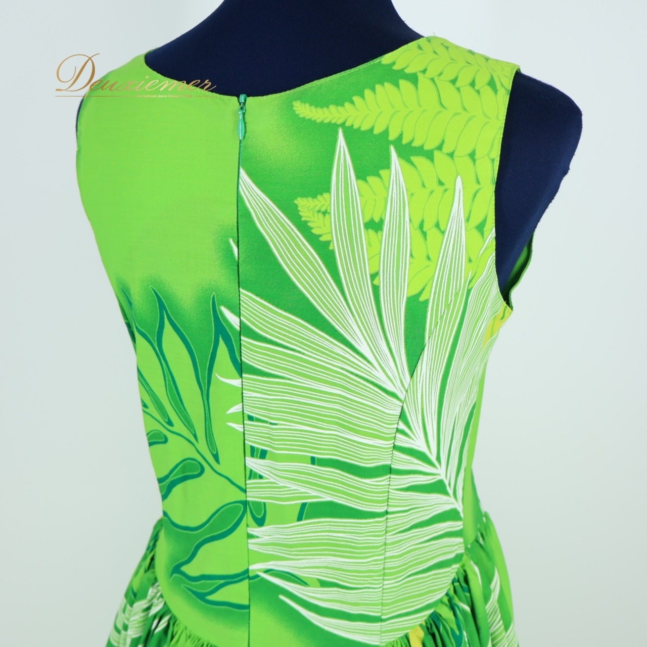 #フラダンス #ワンピースドレス #ライトグリーン #葉っぱ柄 #ノースリーブ #タンクトップドレス #ホワイトコーデ #南国ファッション #爽やかスタイル #MakaMaka #アロハファッション #リゾートスタイル #可愛い衣装 #ダンス衣装 #ダンスコスチューム #ステージ衣装 #古着 #中古 #ENUTSU