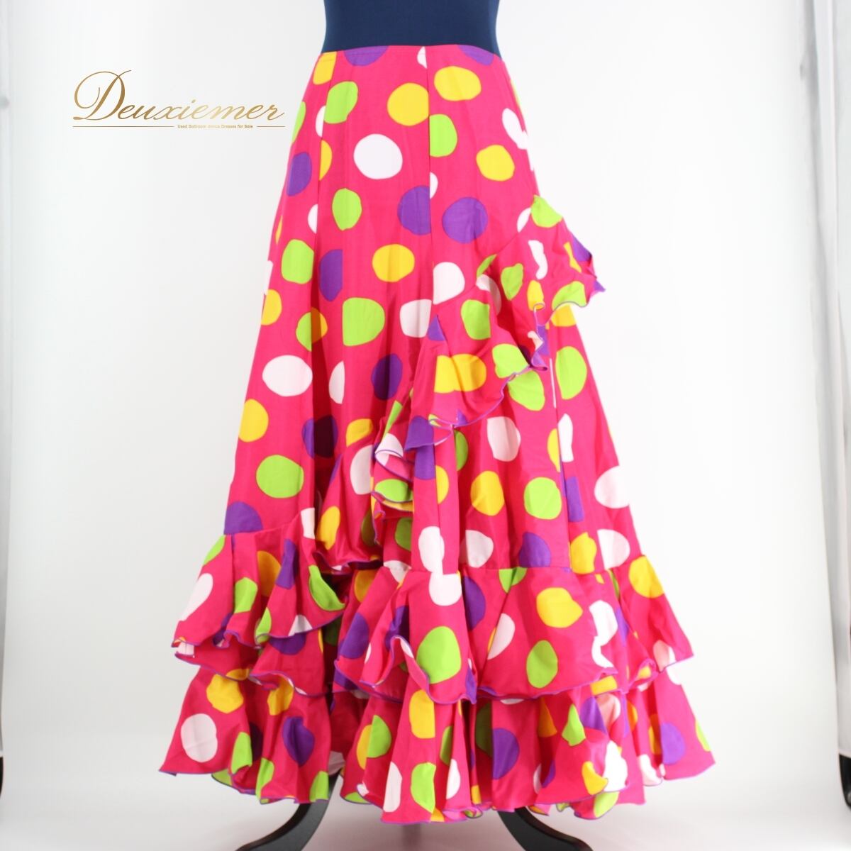 【美品 フラメンコ衣装】スカート ファルダ HERMOSA IBERIA エルモサ イベリア 黄緑 ビビッドピンク 黄色 白 紫 パープル 水玉