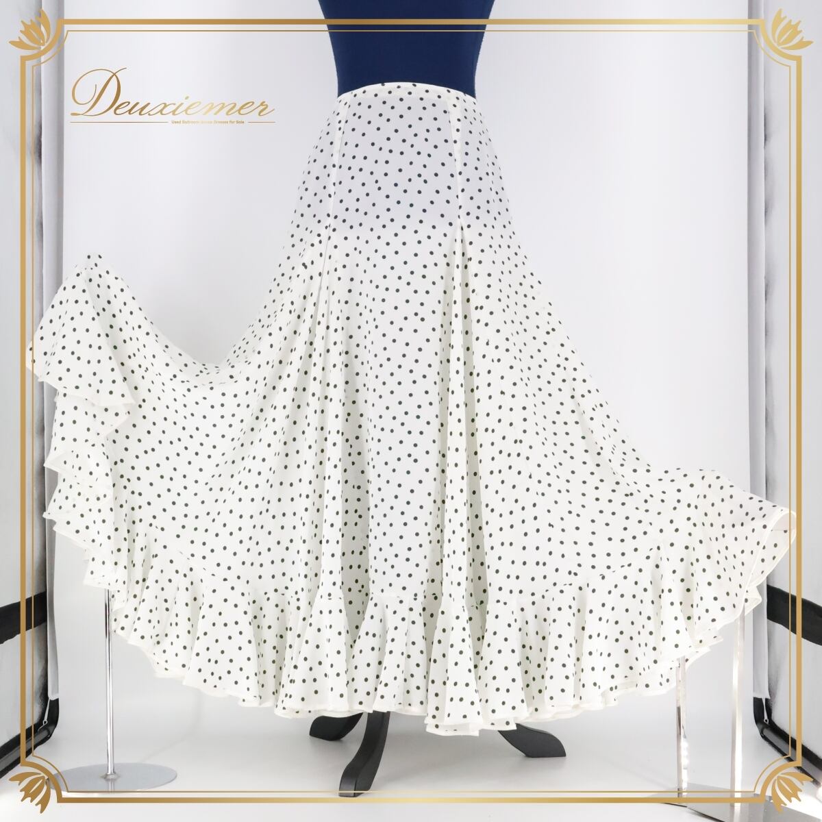 【スペイン製 フラメンコ衣装】ホワイト ペチコート スカート ファルダ 水玉 白 アイボリー ドット 水玉 フリル レース 軽い
