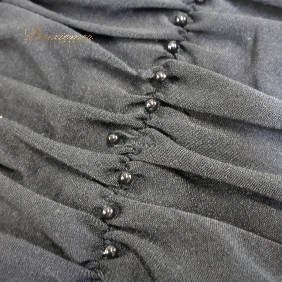 #社交ダンス #社交ダンス衣装 #ダンストップス #ブラックトップス #黒トップス #真っ黒コーデ #無地デザイン #ビーズ付き #胸元飾り #絞りデザイン #シンプルスタイル #大人コーデ #練習着 #レッスンウェア #ダンス衣装 #ダンスコスチューム #ステージ衣装 #古着 #中古 #ENUTSU