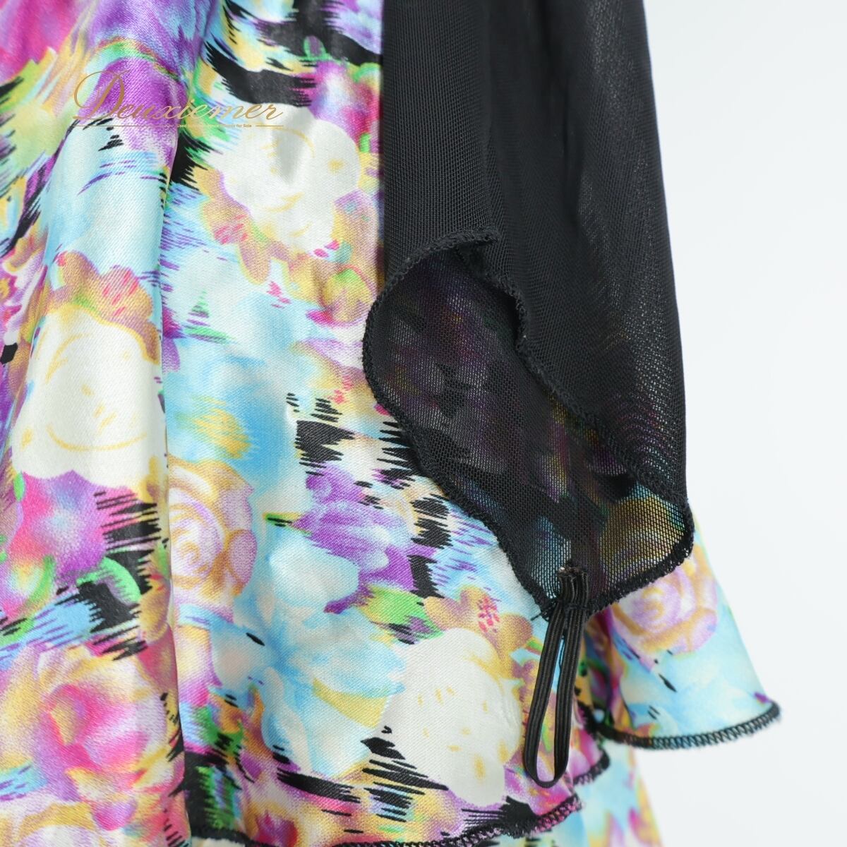 【社交ダンス衣装】ブラック ICHIOKU イチオク ワンピース ドレス 黒 水色 紫 花柄 鮮やか カラフル チョーカー 伸縮 かわいい