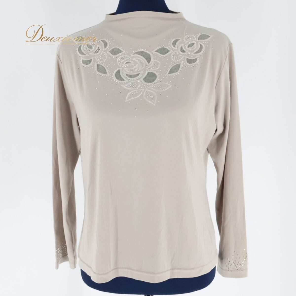 #社交ダンス #社交ダンス衣装 #SOLARE #アイボリートップス #クリーム色トップス #花柄デザイン #ラインストーン付き #ストレッチ素材 #練習着 #レッスンウェア #柔らかカラー #大人かわいい #上品ファッション #シンプル可愛い #動きやすい服 #ダンス衣装 #ダンスコスチューム #ステージ衣装 #古着 #中古 #ENUTSU
