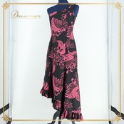 【ハワイ製 フラダンス衣装】ブラック CC Fashions ワンピース ドレス 黒 ピンク 花柄 ワンショルダー フリル 鮮やか 可愛い