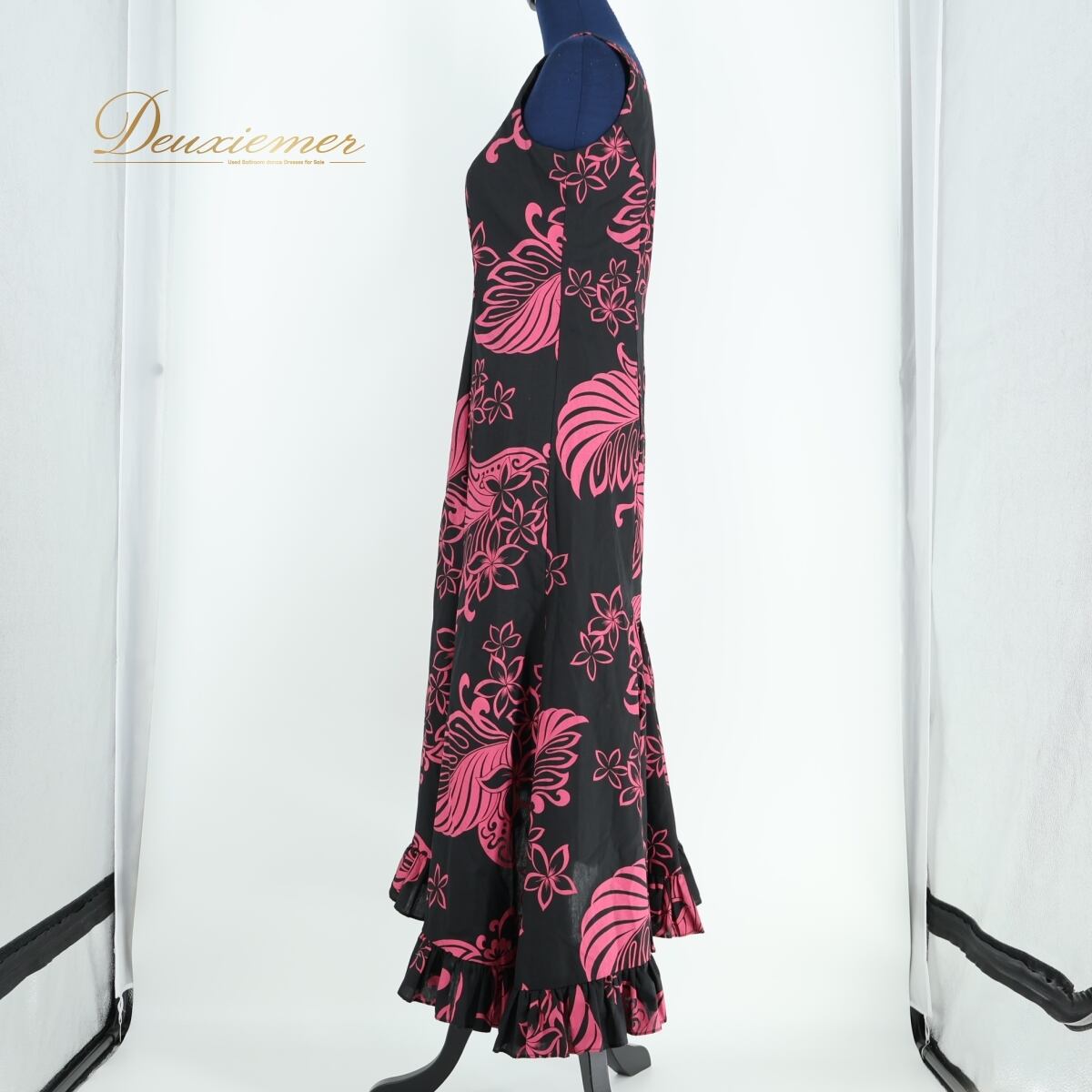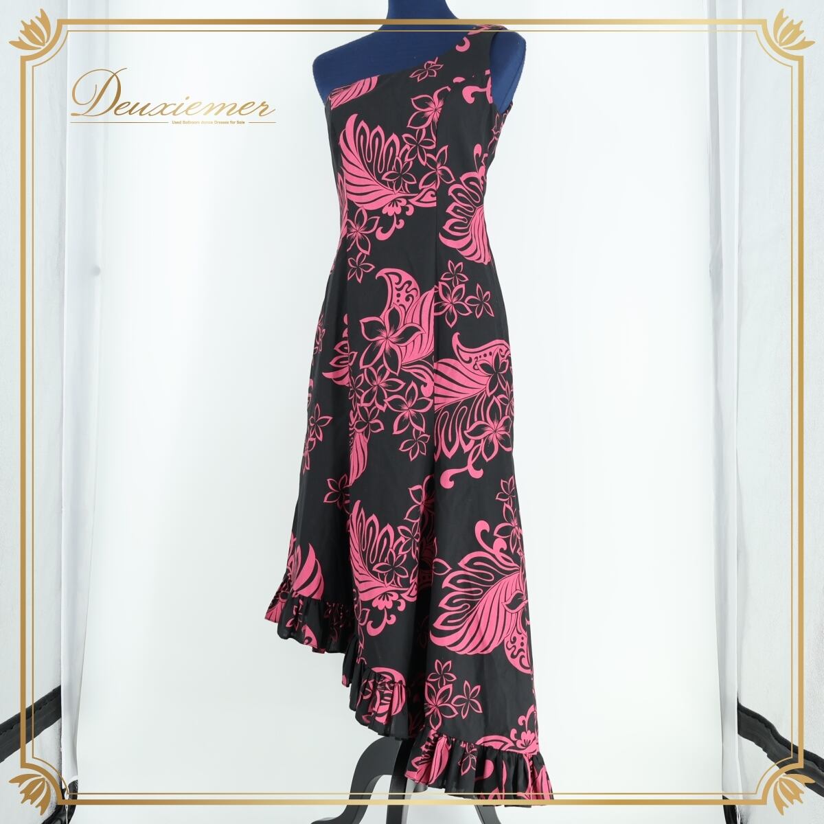 #フラダンス #ワンピースドレス #ハワイ製 #CCFashions #ブラックコーデ #ピンクアクセント #花柄デザイン #ワンショルダー #フリルドレス #南国スタイル #アロハファッション #女性らしい衣装 #ダンス衣装 #ダンスコスチューム #ステージ衣装 #古着 #中古 #ENUTSU