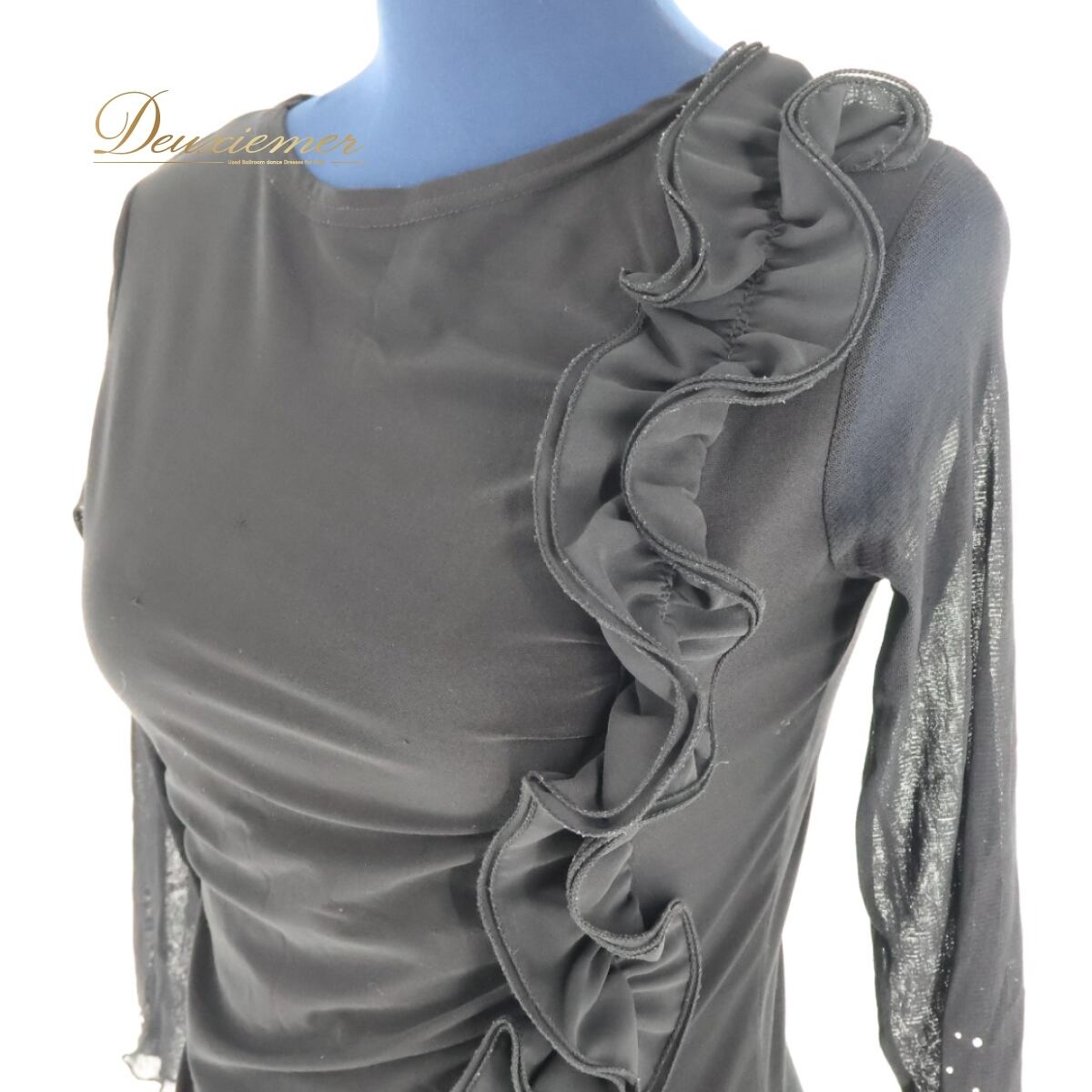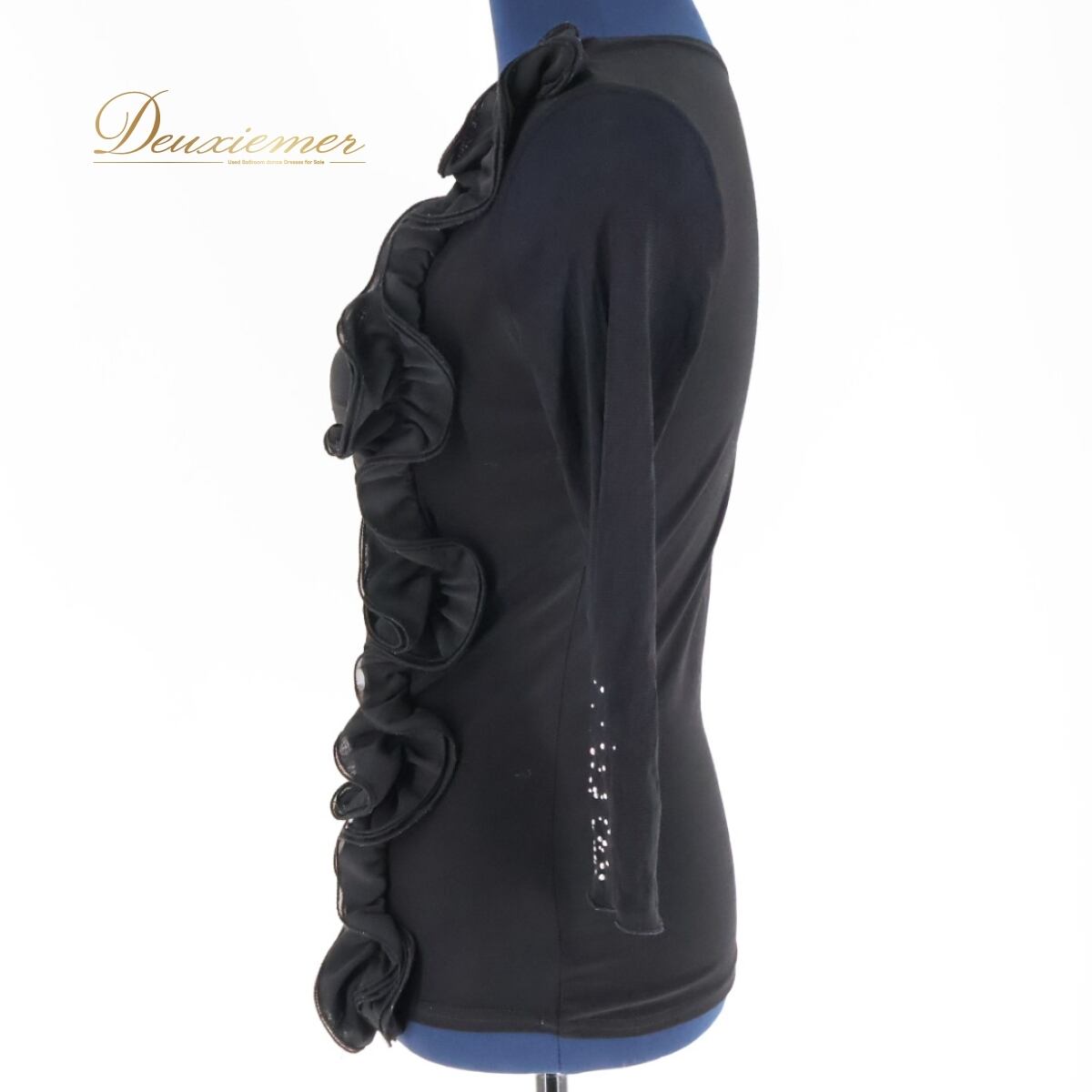【美品 社交ダンス衣装】ブラック トップス フリル 黒 真っ黒 レッスンウェア 練習着 無地 シンプル ラインストーン レース