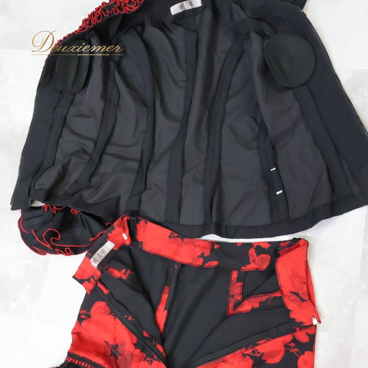 【フラメンコ衣装】レッド BABY TEARS ベビーティアーズ 上下セット ブラック 赤 黒 ボランテ フリル ボウタイ ダンス 豪華 ステージ 舞台 高級感
