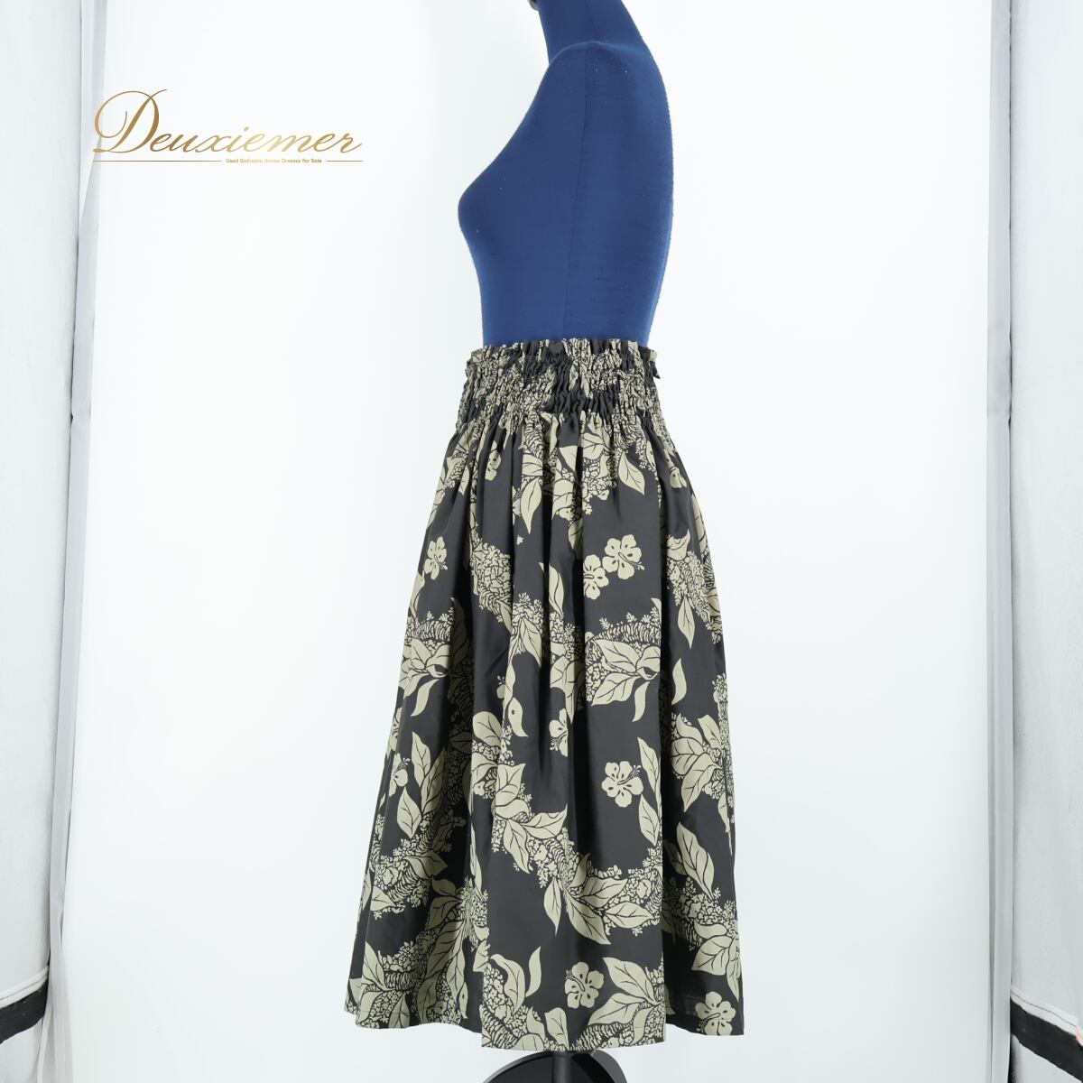 #フラダンス #パウスカート #花柄デザイン #ブラックコーデ #カーキスタイル #落ち着いた色合い #ハワイアンプリント #アロハファッション #シャーリングスカート #練習用スカート #かわいい衣装 #南国スタイル #シングルスカート #ナチュラルカラー #リゾートファッション #ダンス衣装 #ダンスコスチューム #ステージ衣装 #古着 #中古 #ENUTSU
