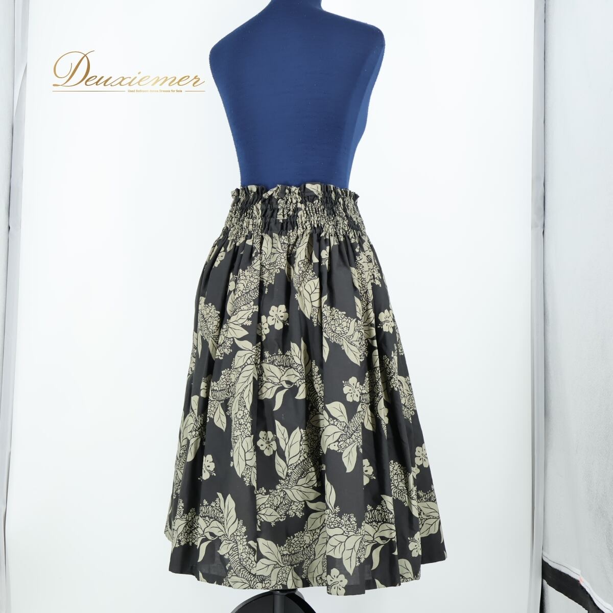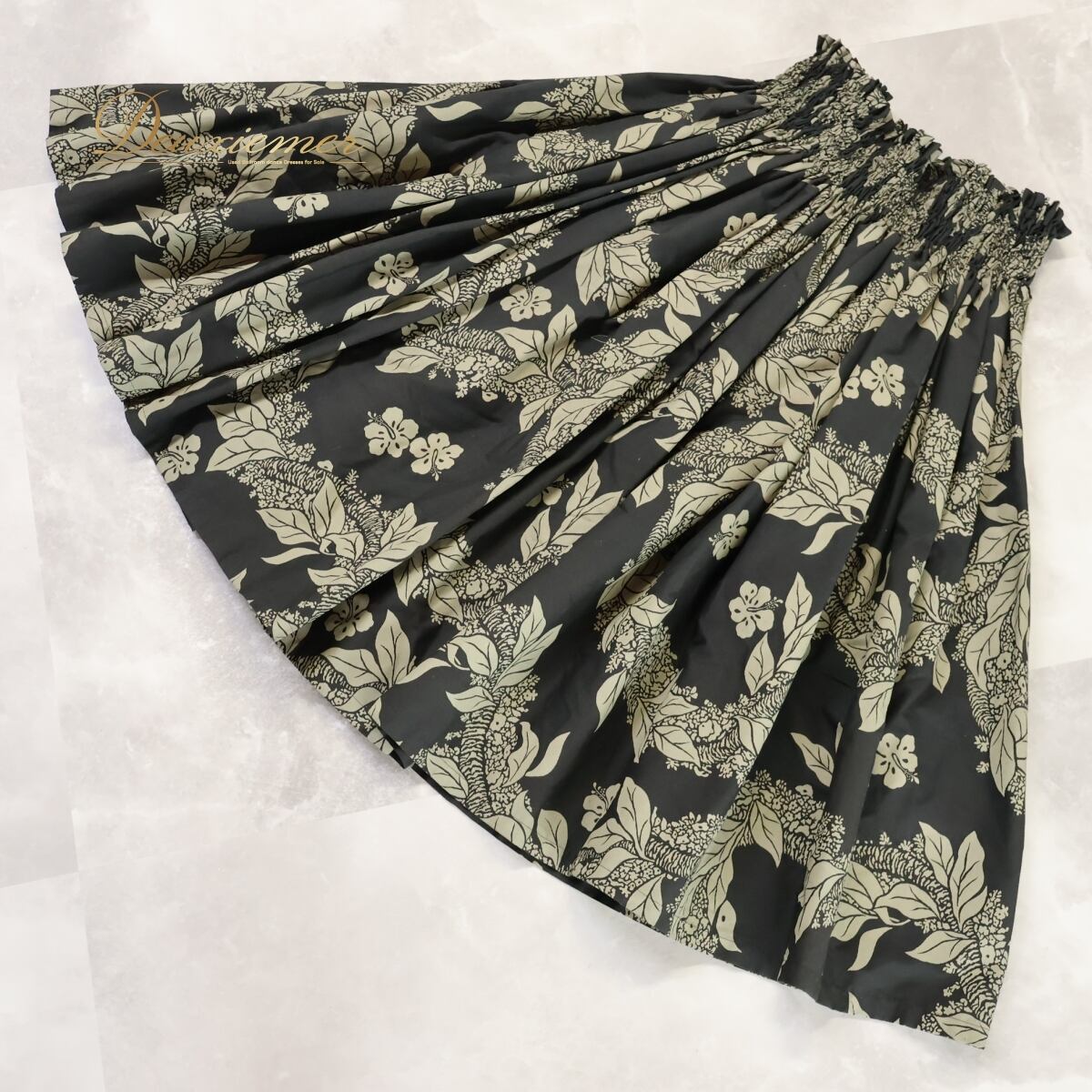 【フラダンス衣装】ブラック パウスカート 黒 カーキ 花柄 シングル ハワイアンプリント アロハ シャーリング 練習 かわいい