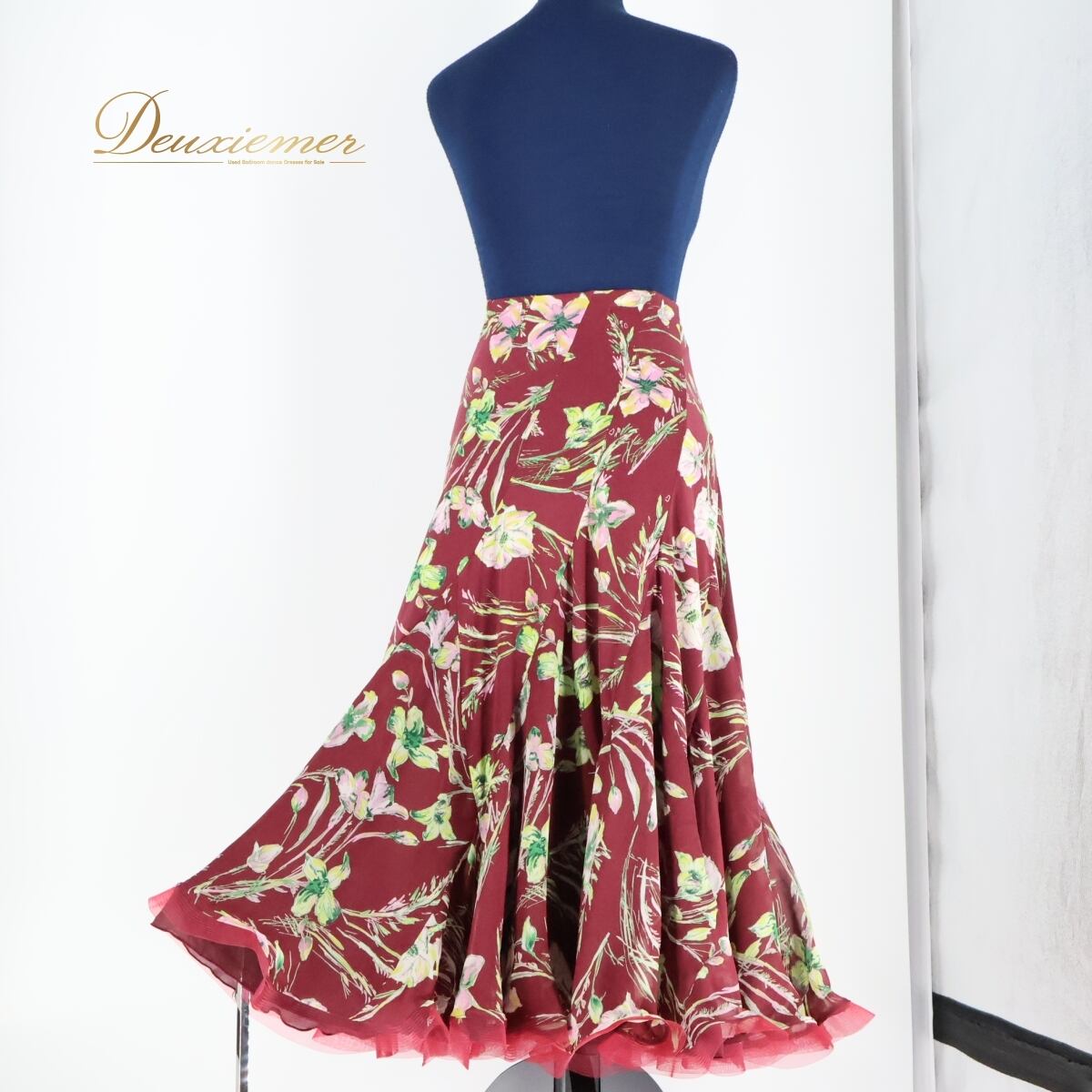 【日本製 社交ダンス衣装】レッド Chacott チャコット スカート ワイン 赤茶色 フリル レース 花柄 レッスン 上品 パーティ ふんわり 柔らかい おしゃれ ダンス 揺れる