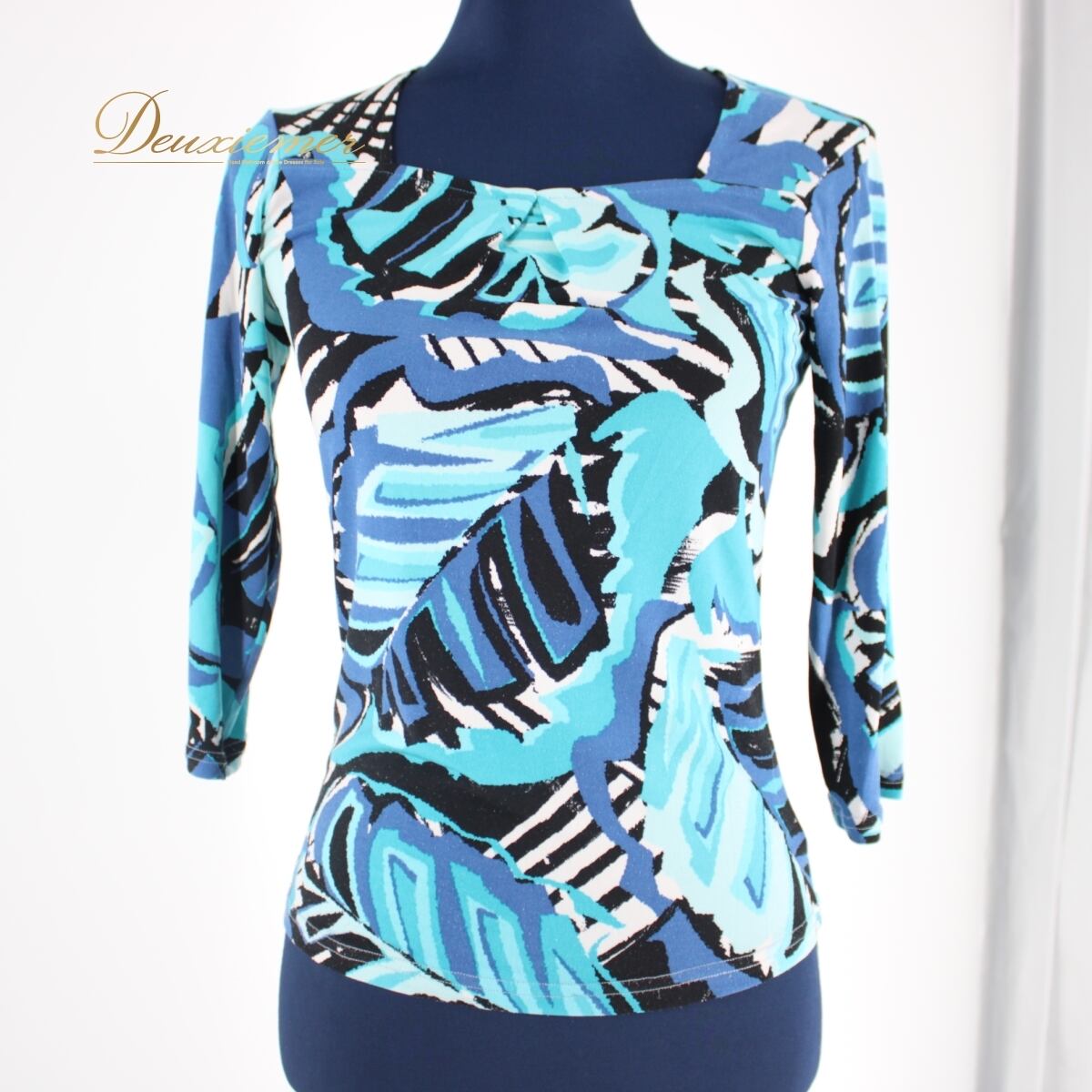 #社交ダンス衣装 #ダンストップス #ブルートップス #ライトブルー #爽やかカラー #millefeuilleDANCE #ミルフィーユダンス #モダンデザイン #大人スタイル #レッスン着 #ブラックアクセント #ホワイトコントラスト #ステージ衣装 #上品スタイル #伸縮性あり #エレガント #おしゃれ #古着 #中古 #ENUTSU