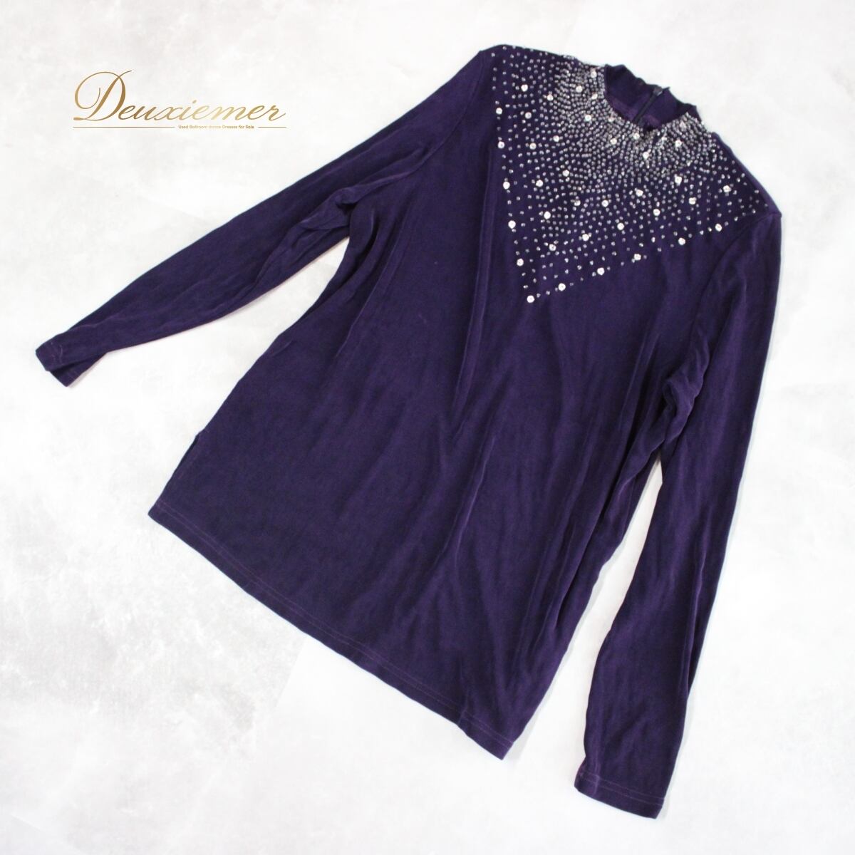 #社交ダンス衣装 #ダンストップス #ディープパープル #ビーズ装飾 #胸元ビジュー #ateliereiko #ファスナー仕様 #ステージファッション #伸縮性あり #華やかデザイン #クラシックスタイル #目立つトップス #古着 #中古 #ENUTSU