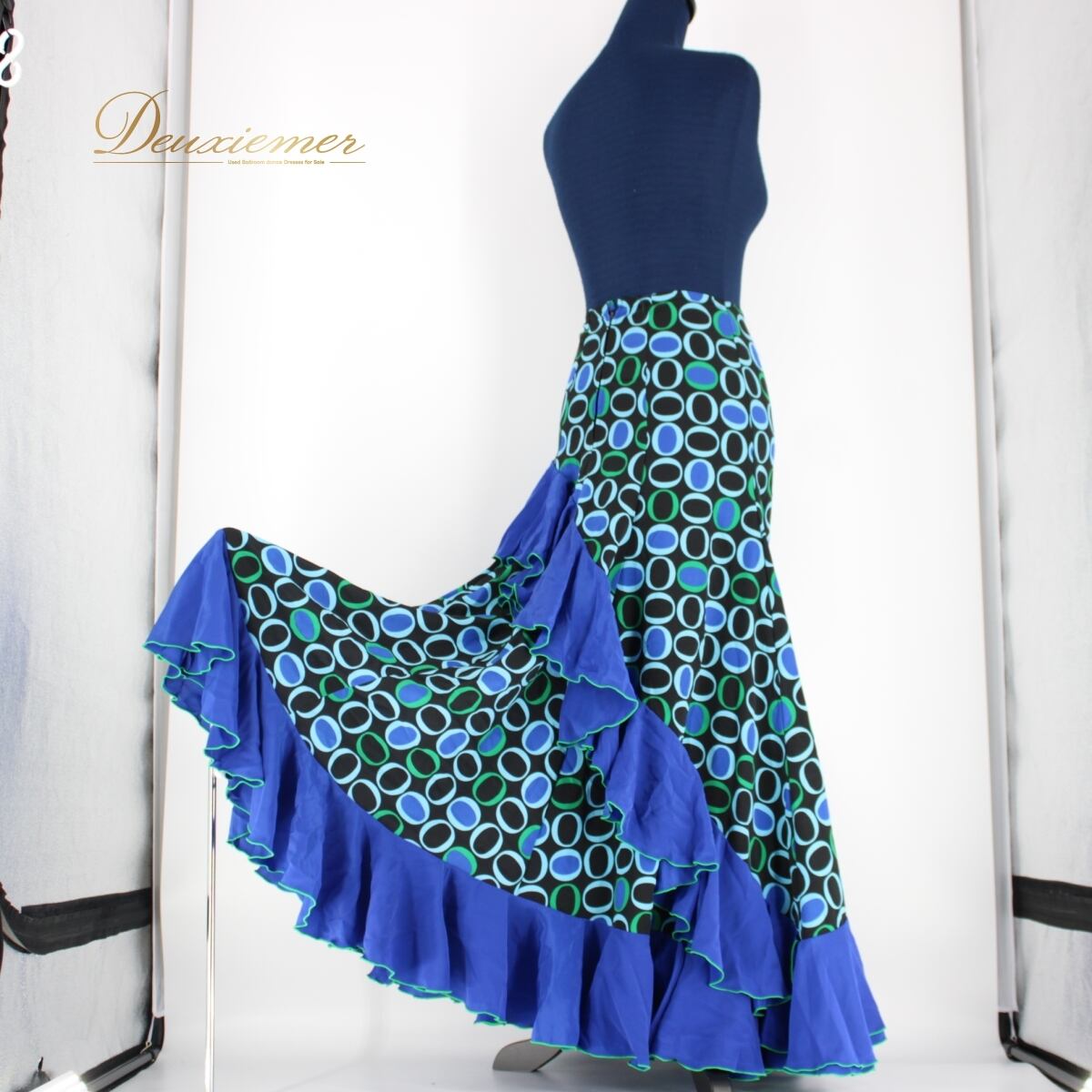 【美品 フラメンコ衣装】スカート ファルダ HERMOSA IBERIA エルモサ イベリア 青 水色 黒 緑 ブルー グリーン ブラック 練習