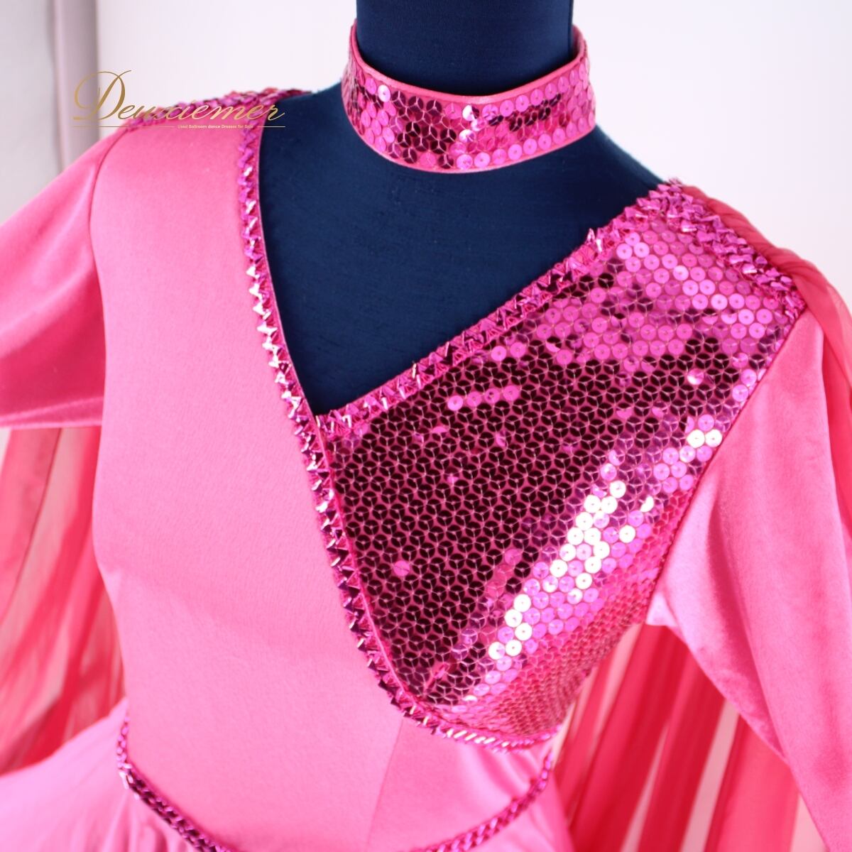 #社交ダンス衣装 #ダンスドレス #ビビッドピンク #スパンコール #フロート付き #華やか #二重スカート #チョーカー付き #ステージ映え #ドレススタイル #大人可愛い #鮮やかカラー #ファスナー仕様 #エレガント #目立つ衣装 #舞台映え #社交ダンスファッション #ダンス衣装 #ダンスコスチューム #ステージ衣装 #古着 #中古 #ENUTSU