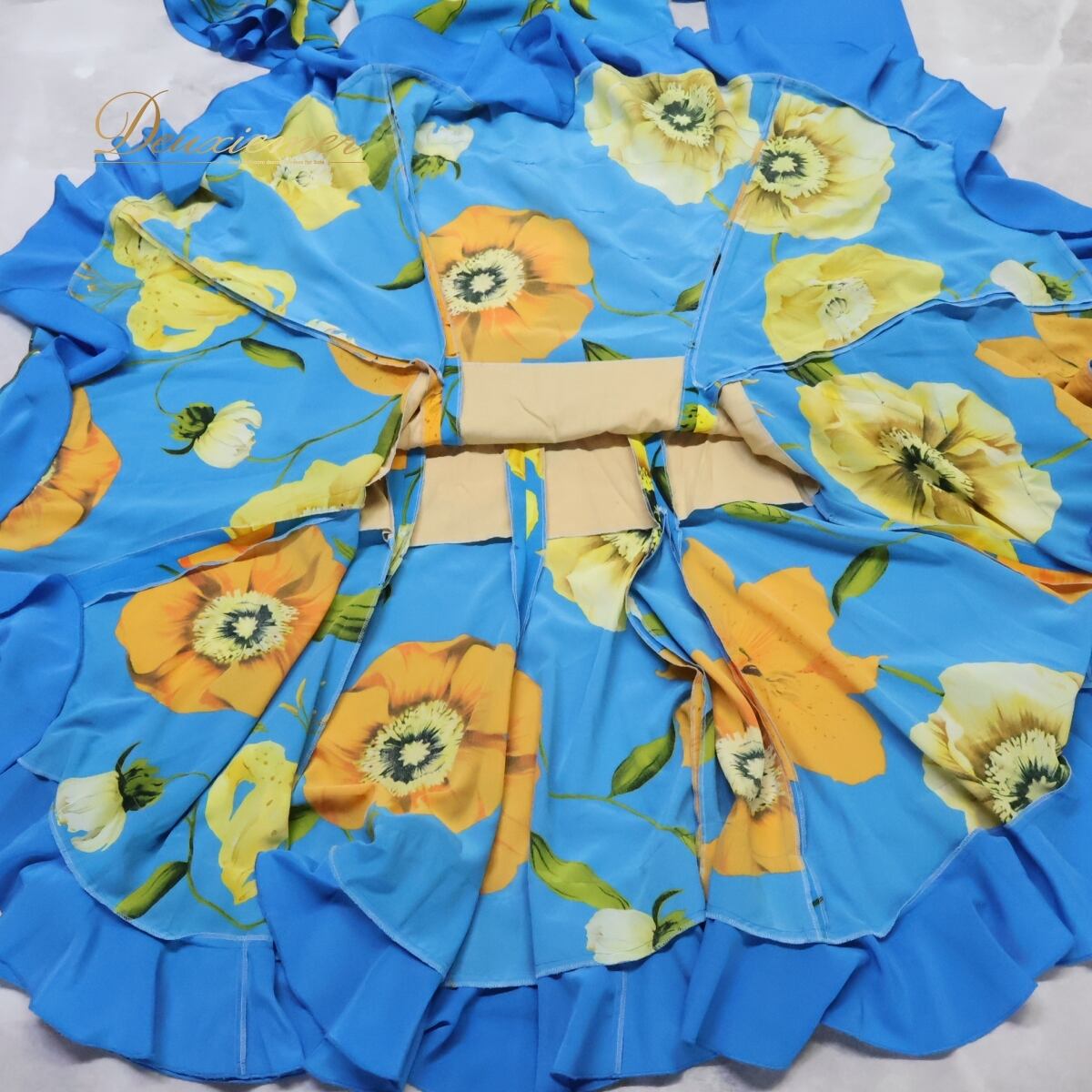 #フラメンコ衣装 #ダンス #コスチューム #ツーピース #セットアップ #ファルダ #ボランテ #青 #黄色 #ボウタイ #フリル #花柄 #ダンス衣装 #パーティー #イベント #ファッション #スタイル #高品質 #女性用 #ENUTSU