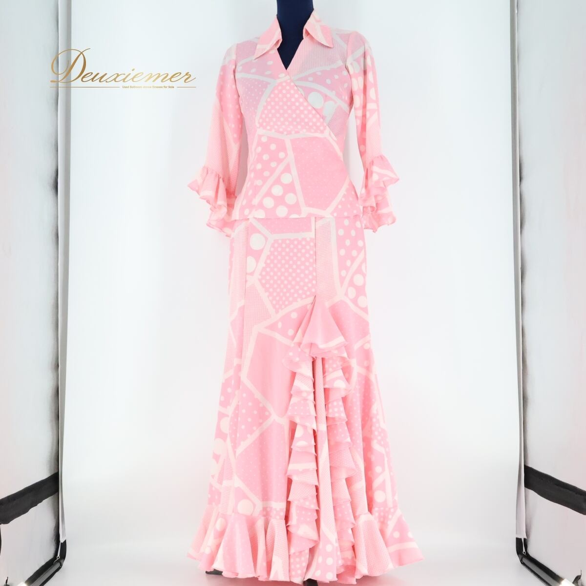 #フラメンコ #衣装 #上下セット #ツーピース #ブラウス #ファルダ #ピンク #ダンス服 #女性らしい #軽い #薄い #パフォーマンス #フリル #レース #ボリュームアップ #夜の舞台 #イベント #スペイン舞踊 #お洒落 #ENUTSU