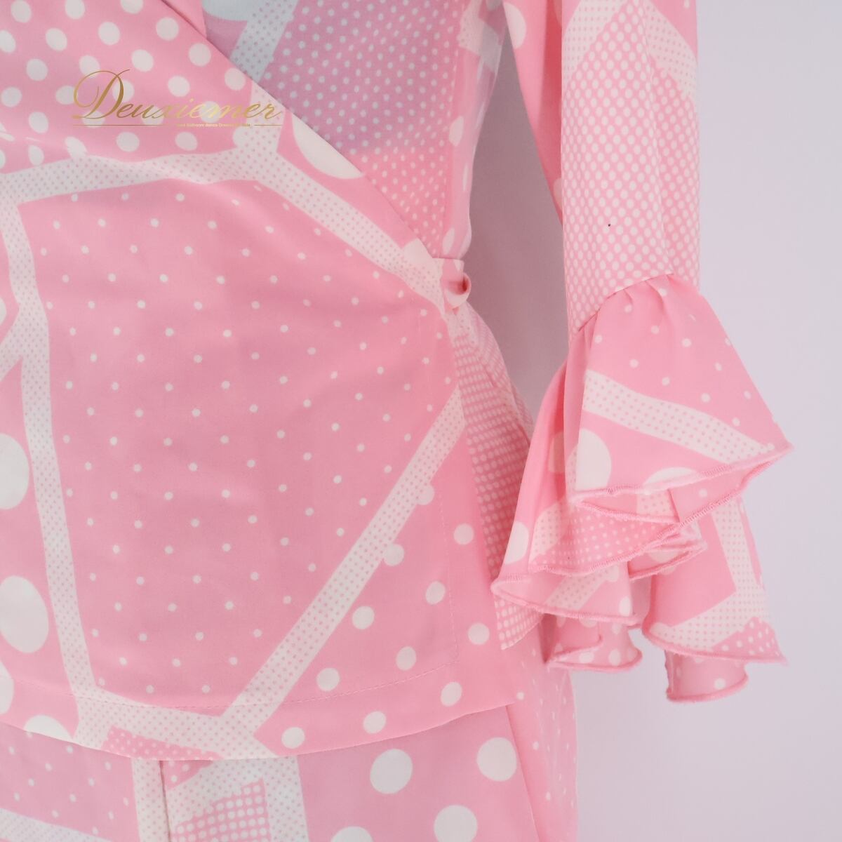 【フラメンコ衣装】ピンク 上下セット ツーピース セットアップ ボランテ フリル レース ブラウス 水玉 ドット 軽い 薄い パーティ ステージ レディース