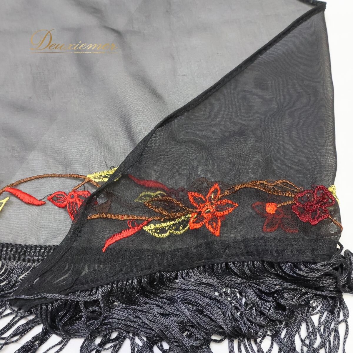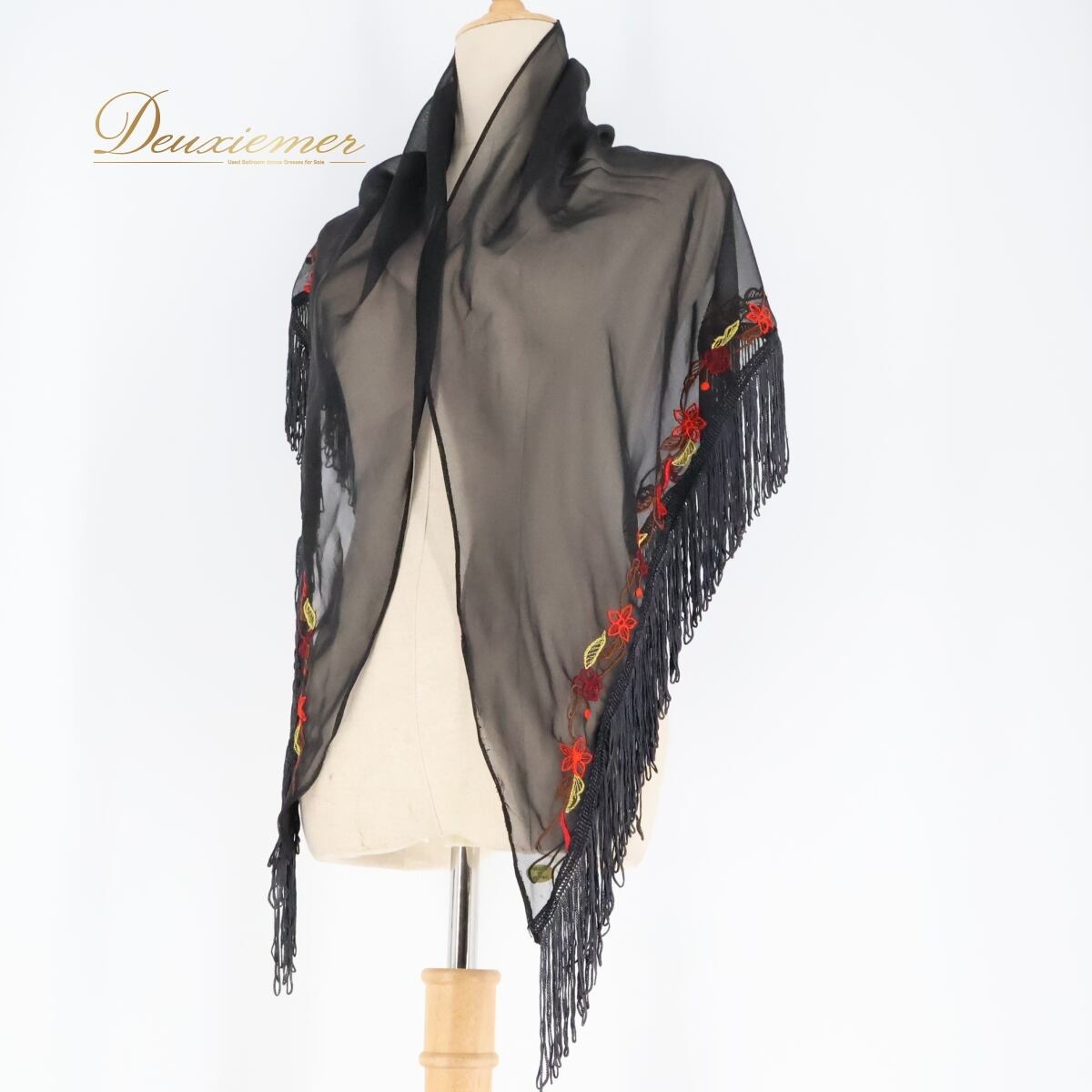 【フラメンコ衣装】ブラック シージョ マントン 黒 レース 透け感 薔薇 刺繍 軽い 薄い ダンス トライアングル 三角形 フレコ