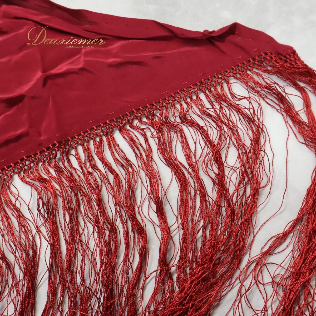 【フラメンコ衣装】ワインレッド シージョ ピキージョ 赤 ボルドー フレコ 軽い 薄い フリンジ トライアングル 三角形 無地