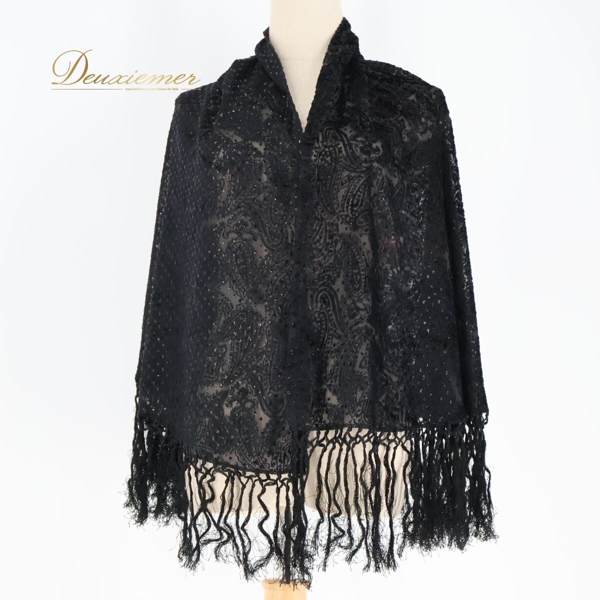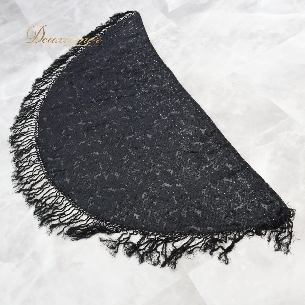 【フラメンコ衣装】ブラック シージョ マントン スカーフ 黒 ベロア 半円 フレコ フリンジ ダンス ベリーダンス 小物 小道具