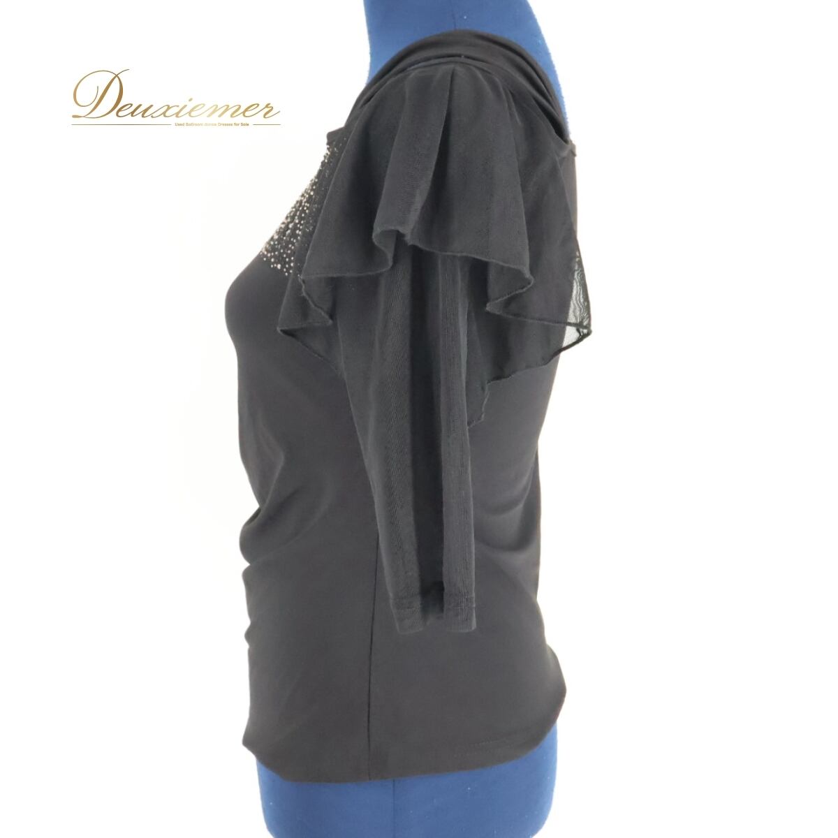 #社交ダンス衣装 #ブラックトップス #レースブラウス #フリルトップス #ラインストーン #ラメ入り #シンプルダンスコーデ #レッスンウェア #練習着 #大人の習い事 #エレガントスタイル #ダンスファッション #ダンスウェア #ダンス衣装通販 #ダンス衣装 #ダンスコスチューム #ステージ衣装 #古着 #中古 #ENUTSU