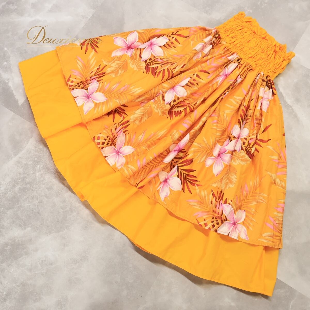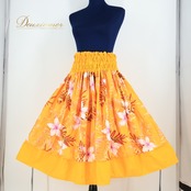 【フラダンス衣装】イエロー パウスカート 黄 白 ピンク 花柄 鮮やか 明るい ハワイアンプリント アロハ レッスン かわいい