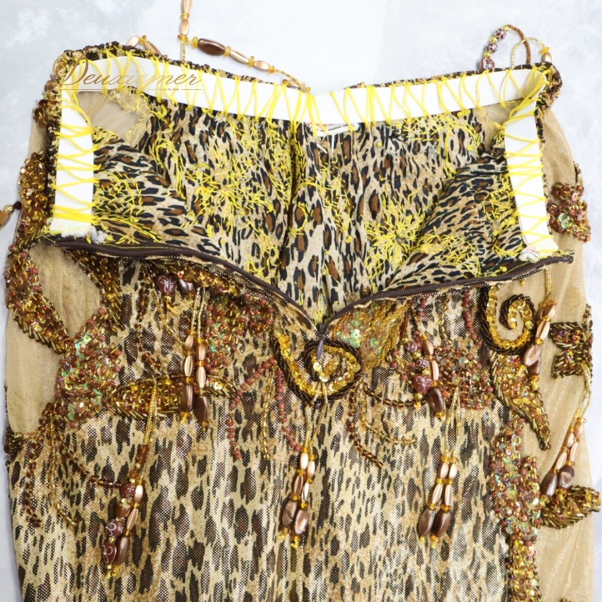#ベリーダンス #オリエンタル衣装 #ゴールド #ヒョウ柄 #スパンコール #ビーズ #ラメ #光沢 #艶 #豪華 #スカート #トップス #舞台衣装 #ダンス衣装 #ファッション #衣装セット #スリット付き #ウエストゴム #ファスナー #ENUTSU