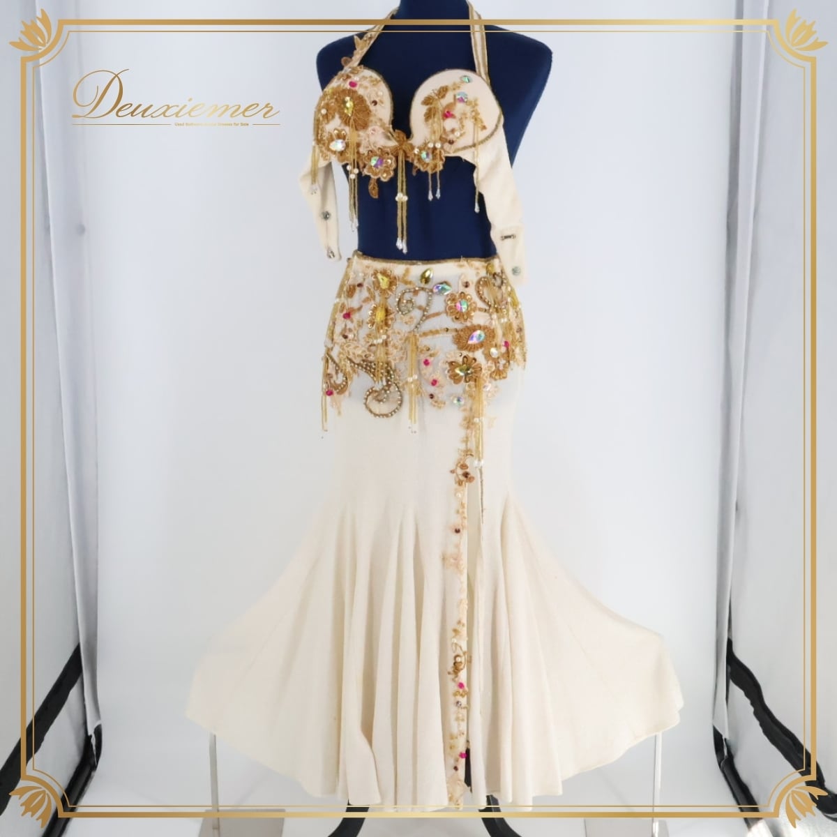 #ベリーダンス #オリエンタル #衣装 #アイボリー #オレンジ #ラインストーン #ビーズ #装飾 #フリル #スリット #ダンスコスチューム #エレガント #豪華 #動きやすい #お洒落 #パフォーマンス #女性 #コスプレ #ファッション #ENUTSU