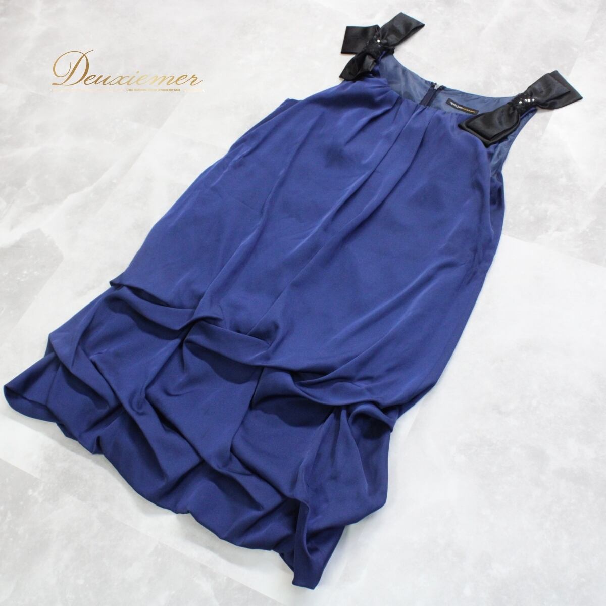【パーティドレス】ネイビー apres jour アプレジュール ワンピース ドレス 青 ブルー 紺色 リボン 黒 お呼ばれ パーティ 結婚式 ミニ丈 レディース おしゃれ