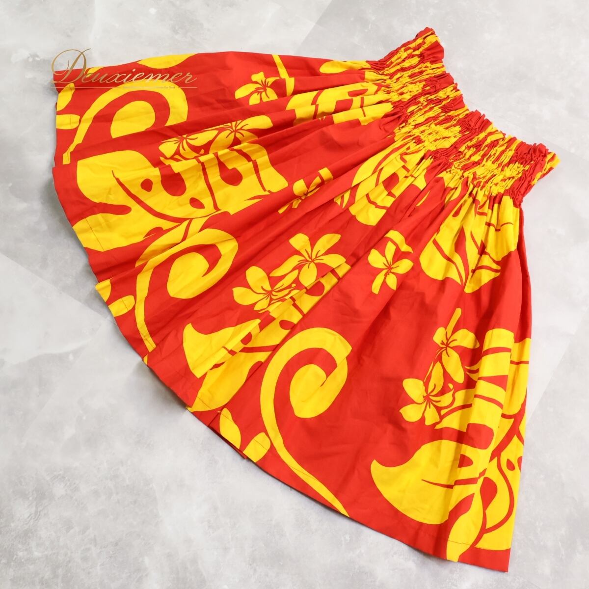 #フラダンス #パウスカート #レッドコーデ #イエローアクセント #モンステラ柄 #花柄デザイン #鮮やかカラー #明るい印象 #ハワイアンスタイル #アロハファッション #かわいい衣装 #ゴムウエスト #南国ファッション #夏コーデ #リゾートウェア #ダンス衣装 #ダンスコスチューム #ステージ衣装 #古着 #中古 #ENUTSU