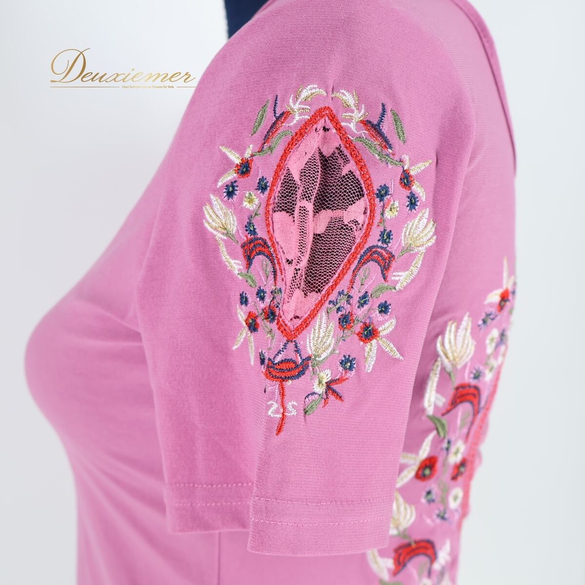 #社交ダンス #ダンストップス #ピンクコーデ #花柄刺繍 #レースデザイン #ICHIOKU #半袖トップス #練習着 #レッスンウェア #大人かわいい #上品スタイル #赤アクセント #白トップス #フラワーモチーフ #華やかデザイン #ダンス衣装 #ダンスコスチューム #ステージ衣装 #古着 #中古 #ENUTSU