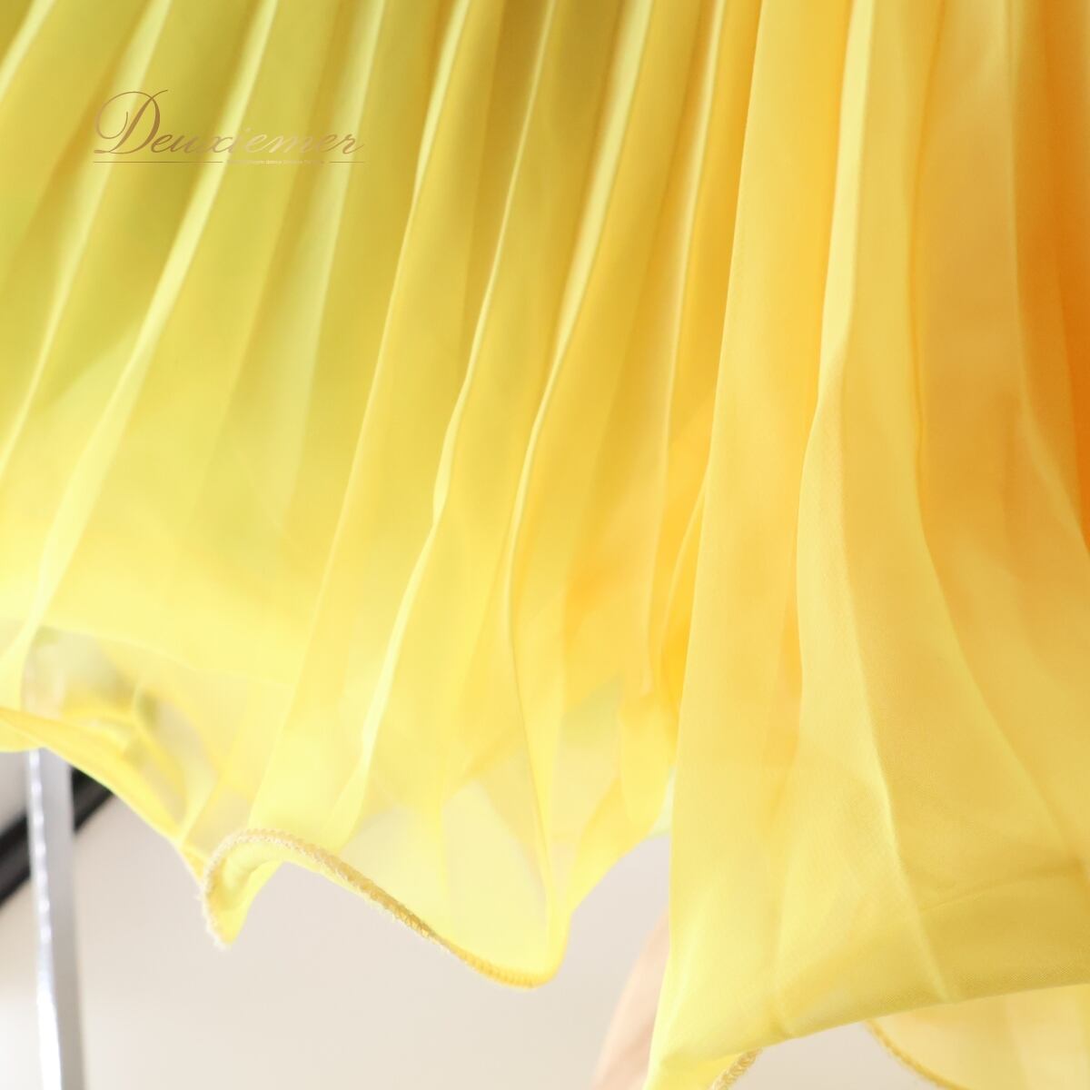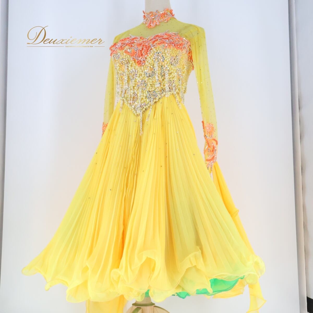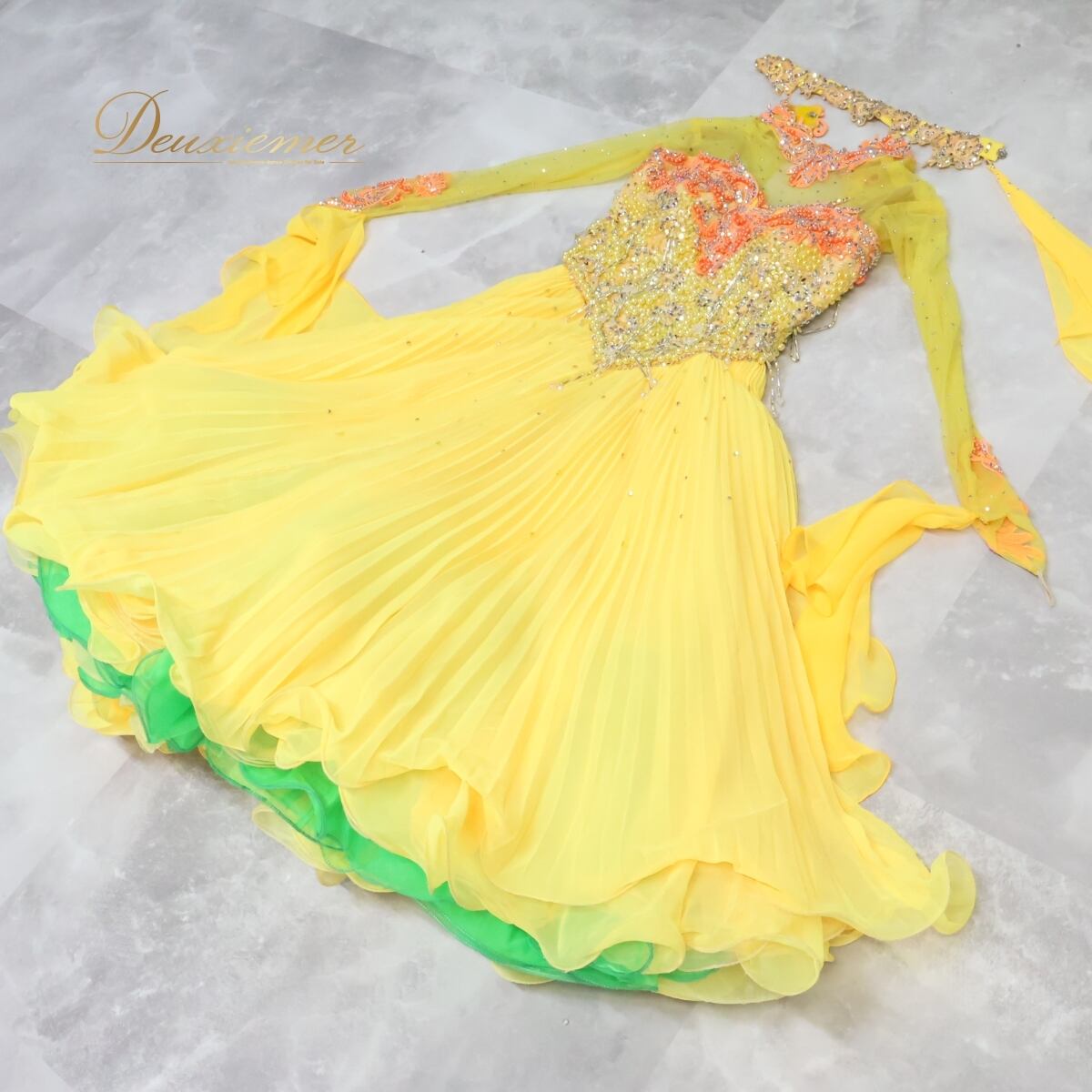 #社交ダンス #ダンス衣装 #ワンピース #ドレス #競技用 #フロート #ボリューム #プリーツ #フリル #レース #ミニ丈 #イエロー #おしゃれ #スタイル #パーティー #ダンス用品 #女性用 #ファッション #イベント #ENUTSU